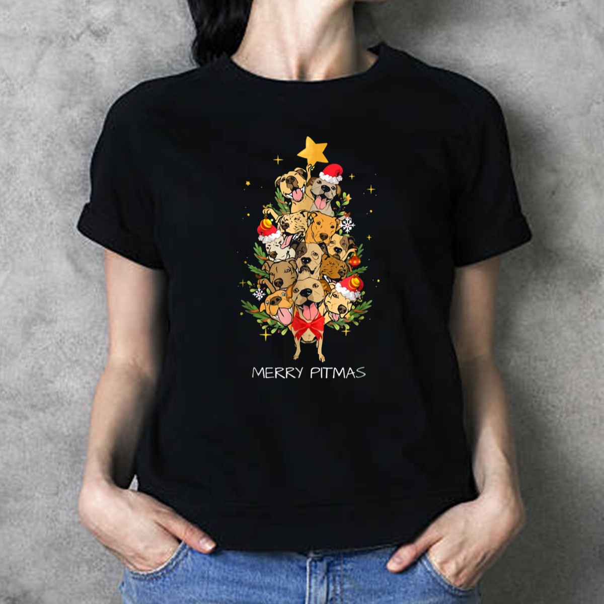 Celebrate the festive season with our Merry Pitmas Pitbull Christmas Tree T-Shirt! Perfect for dog lovers and pitbull enthusiasts, this shirt brings a joyful twist to traditional holiday attire. Ideal for casual wear, themed events, and everyday outings, it features a charming design of a Christmas tree adorned with Santa hats and ornaments, showcasing your love for your furry friends. Made with high-quality materials and printed in the USA, this shirt is a unique addition to your holiday wardrobe.