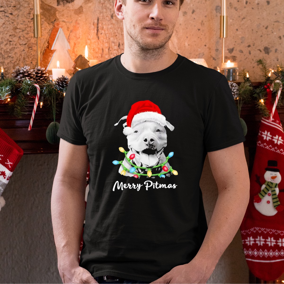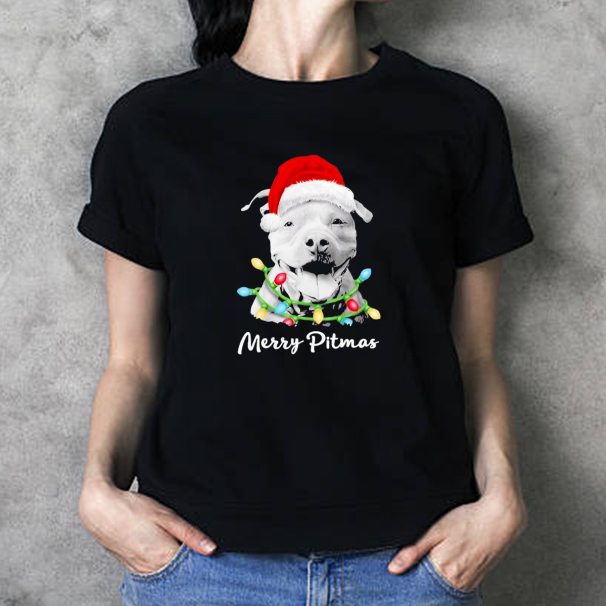 Be the first to review “Merry Pitmas Santa Hat Pit Bull Christmas Lights T-Shirt”