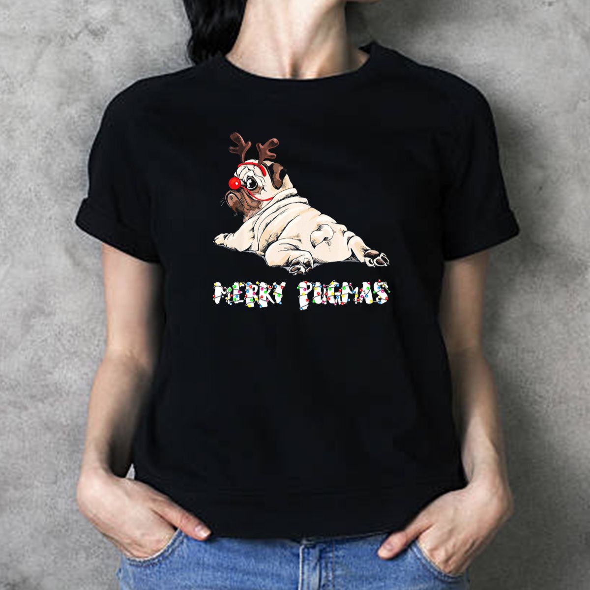 Celebrate the holiday season with our Merry Pugmas Christmas T-Shirt, featuring an adorable reindeer pug adorned with festive lights! This charming graphic tee is perfect for dog lovers who want to spread Christmas cheer at casual gatherings, themed events, or daily wear. Made in the USA with high-quality materials, this fan-made design is sure to become a favorite in your holiday wardrobe.