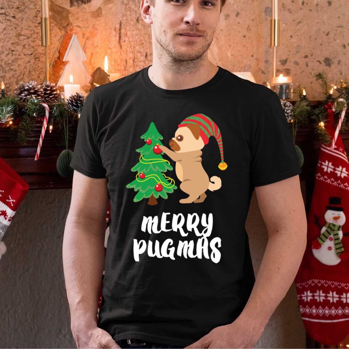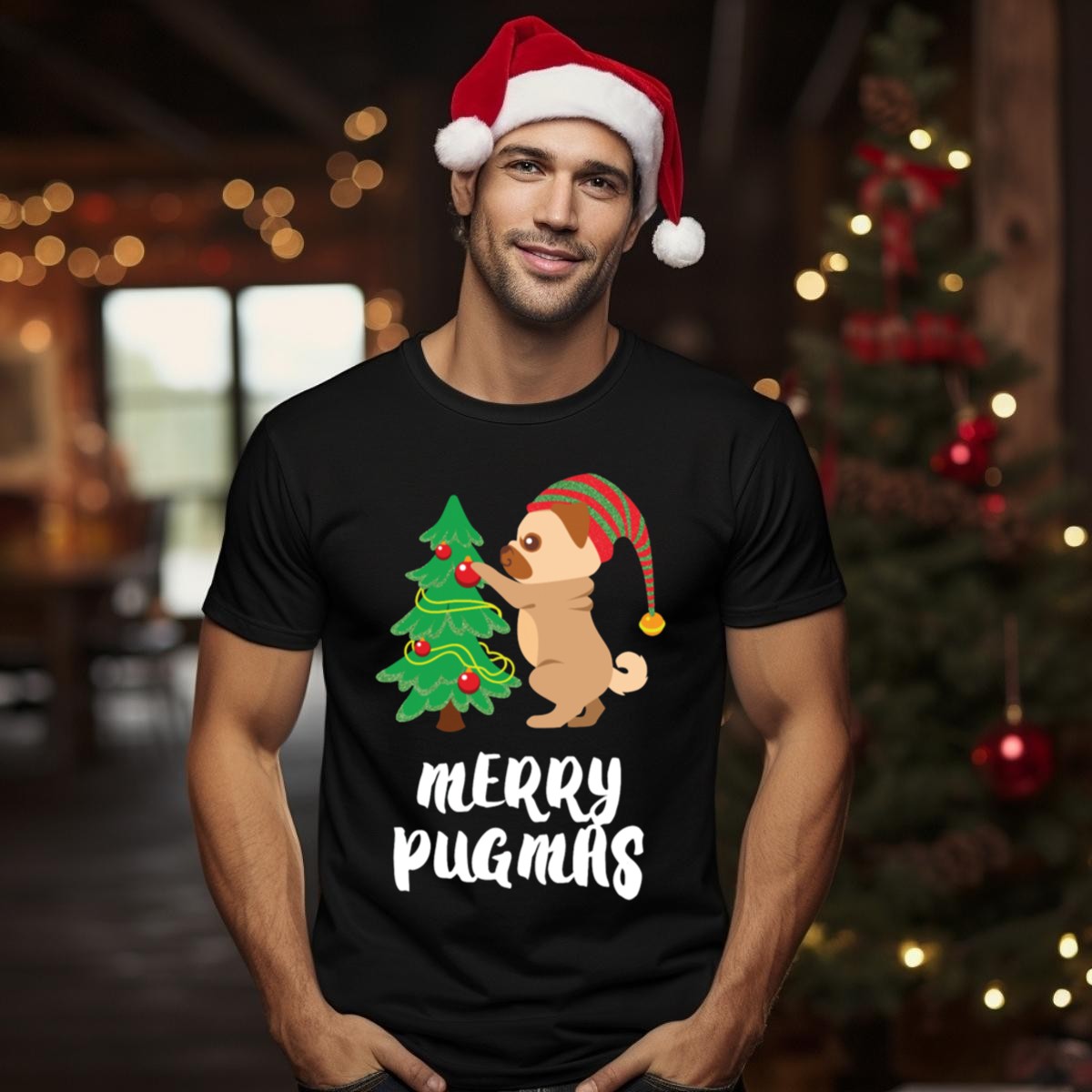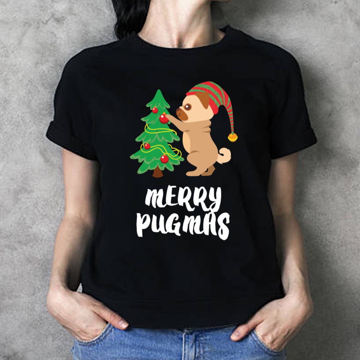 Be the first to review “Merry Pugmas Pug Decorating Christmas Tree With Elf Hat T-Shirt”