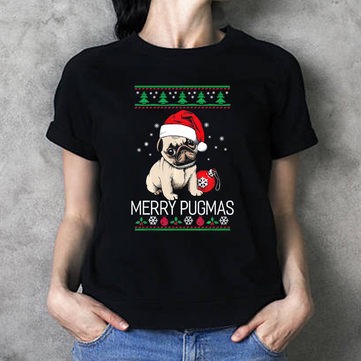 Merry Pugmas Santa Pug With Christmas Trees And T-Shirt