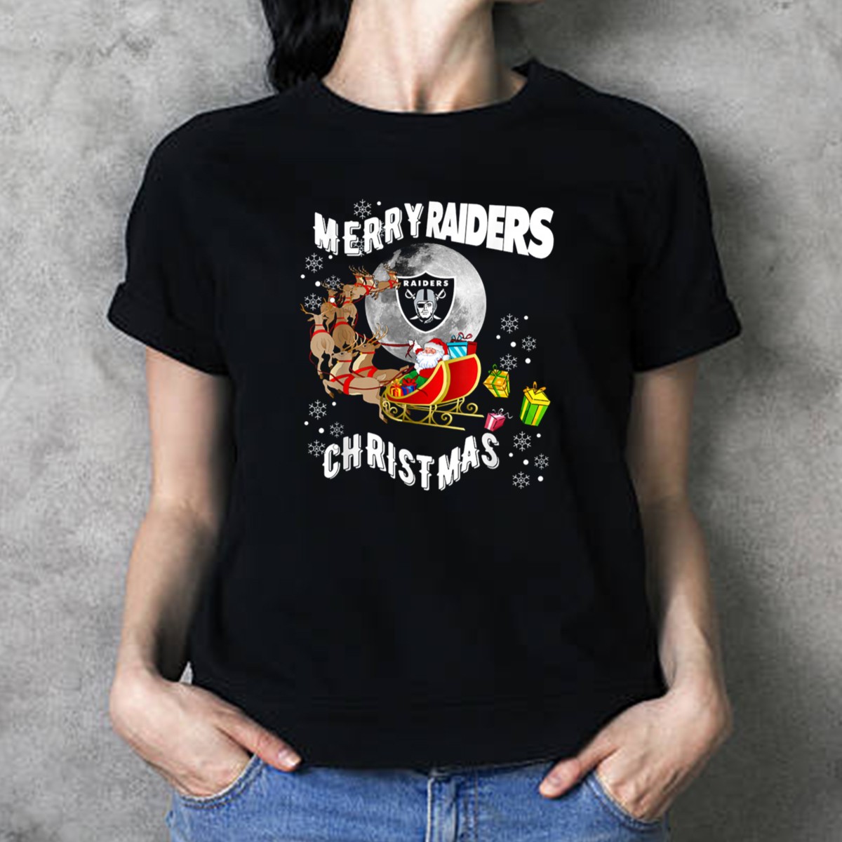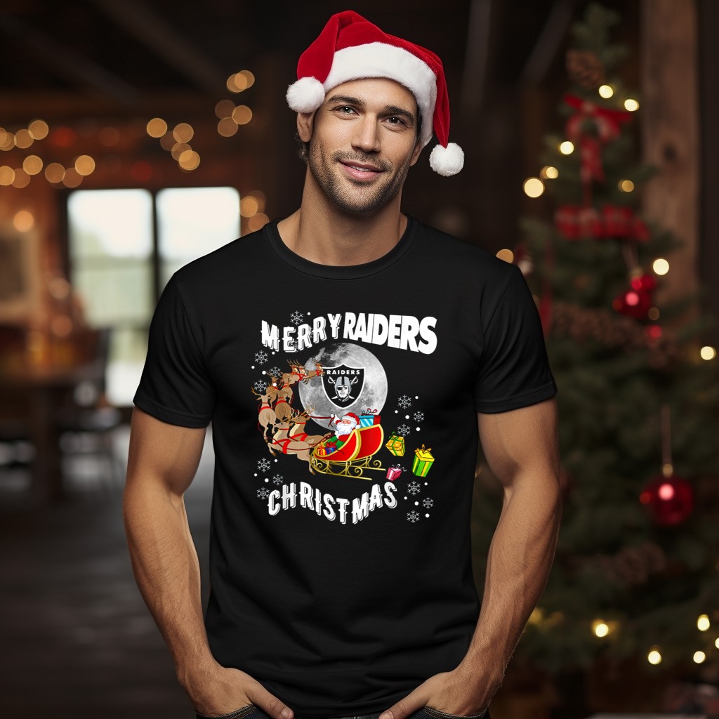 Merry Raiders Christmas Santa Sleigh Snowflakes Reindeer Presents T-Shirt