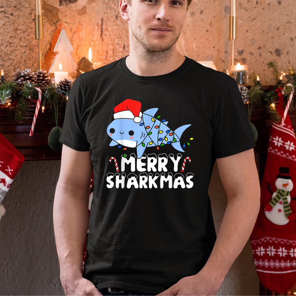 Get ready to spread some holiday cheer with our Merry Sharkmas Santa Shark Christmas Lights Boys T-Shirt! Perfect for young ocean enthusiasts and little ones who love festive fun, this shirt features a playful design that combines the joy of Christmas with a whimsical shark twist. Ideal for themed events, casual outings, or just cozying up during the holiday season, this shirt is sure to make any boy stand out with its unique fan-made print, proudly crafted in the USA.