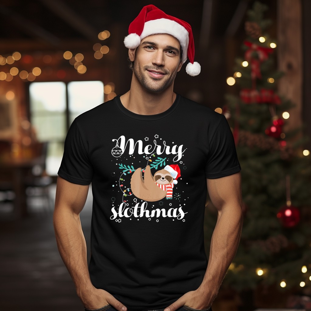 Celebrate the holiday season in style with our Merry Slothmas Christmas T-Shirt! Perfect for sloth lovers and festive spirits alike, this fun and whimsical design features a charming sloth donning a Santa hat and scarf, making it an ideal choice for casual wear, themed events, or simply spreading cheer during daily activities. Crafted with comfort in mind, this shirt is a delightful addition to your all-season wardrobe.