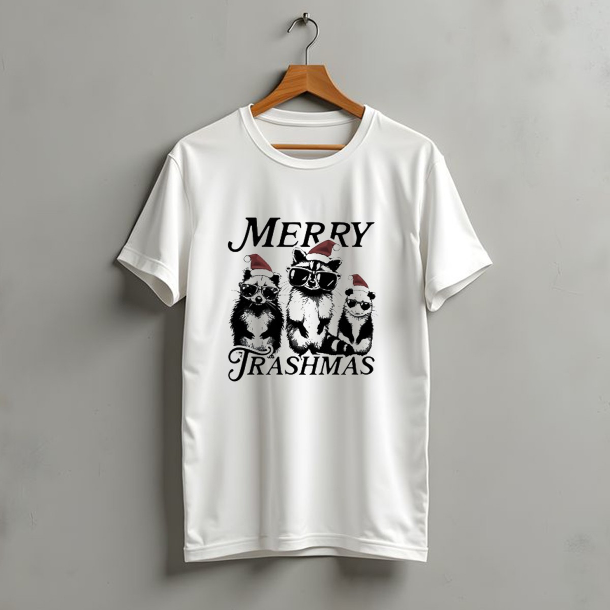 Celebrate the holiday spirit with our Merry Trashmas Raccoons In Santa Hats With Sunglasses Christmas T-Shirt! This fun and quirky design is perfect for those who love to add a dash of humor to their festive wardrobe. Ideal for casual gatherings, themed events, or just lounging around during the holiday season, this shirt is a must-have for anyone who appreciates a playful take on Christmas. Made with care and printed in the USA, it’s not just a shirt; it’s a statement!