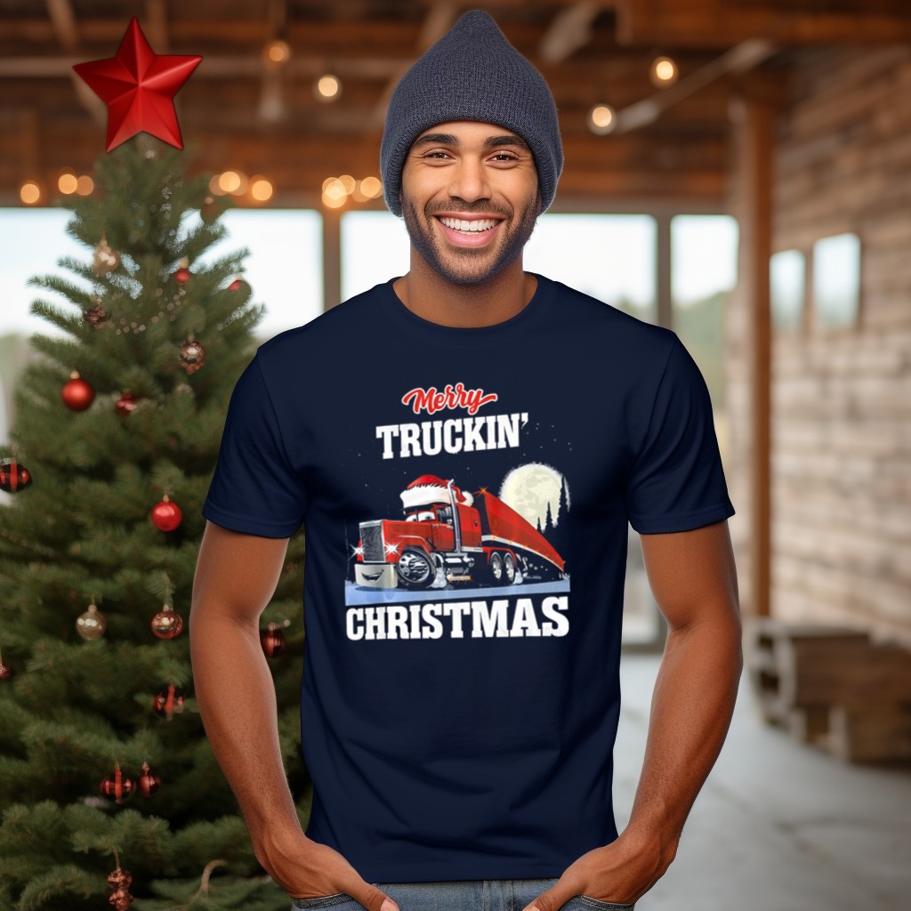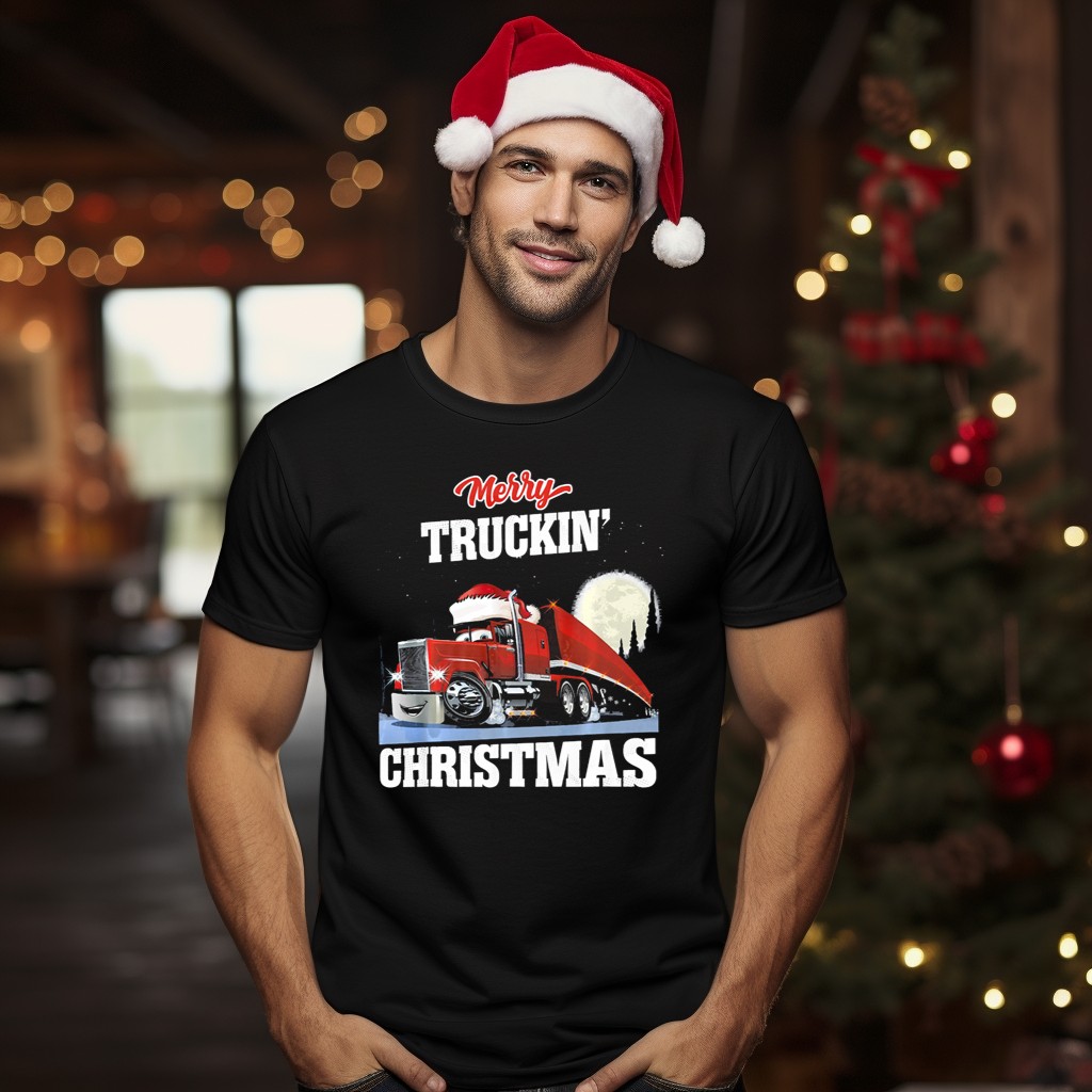 Celebrate the festive season with our Merry Truckin’ Christmas T-Shirt, featuring a charming design of a red truck adorned with a Santa hat against a moonlit backdrop. Perfect for those who love to embrace the holiday spirit, this shirt is ideal for casual outings, themed events, or simply spreading cheer in your daily wear. Made with care and printed in the USA, it’s a unique fan-made design that brings joy to both the wearer and those around them.