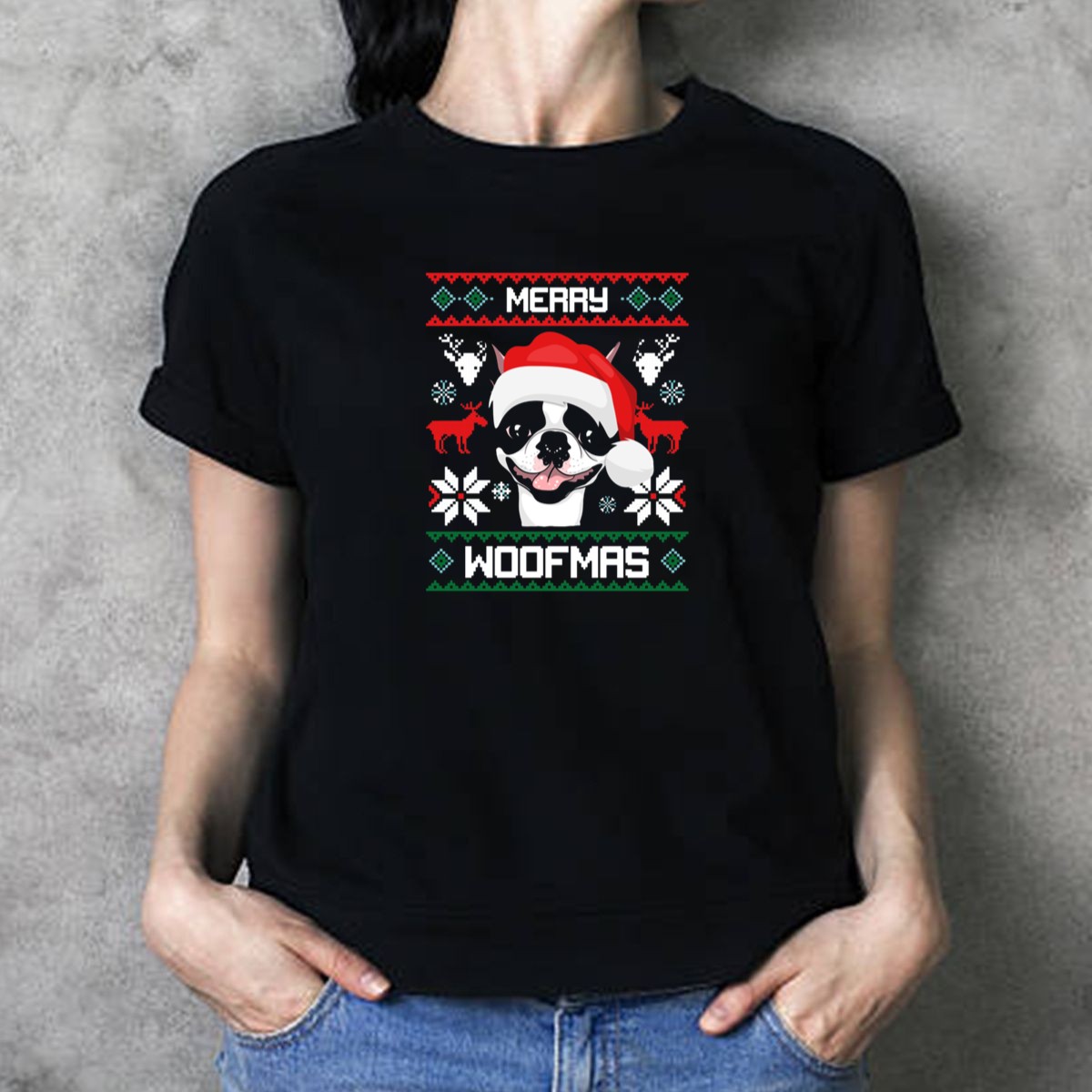 Celebrate the joy of the holiday season with our Merry Woofmas Boston Terrier Christmas T-Shirt! Perfect for dog lovers and festive gatherings, this fun and playful design showcases an adorable Boston Terrier donning a Santa hat surrounded by cheerful reindeer and snowflakes. Ideal for casual wear, themed events, or just lounging at home, this shirt is a must-have for anyone who wants to spread Christmas cheer with a touch of canine charm. Made with love in the USA, it’s not just a shirt; it’s a celebration of your favorite furry friend!