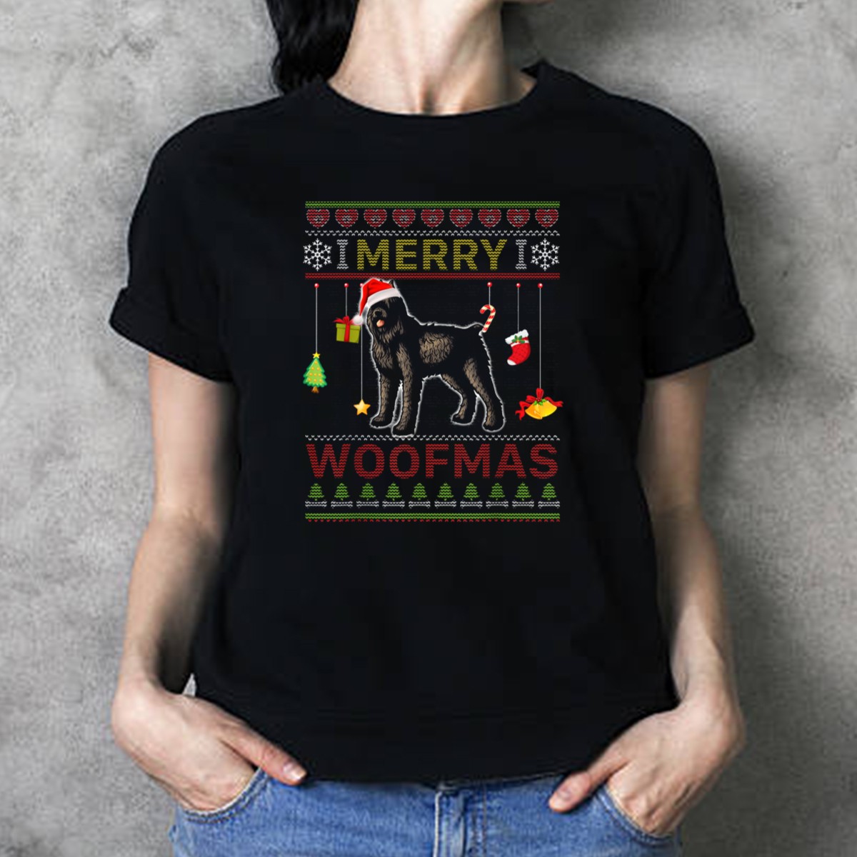 Celebrate the festive season with our Merry Woofmas Bouvier Des Flandres Christmas T-Shirt, perfect for dog lovers and holiday enthusiasts alike! This fun and cheerful tee showcases a delightful fan-made design featuring a Bouvier Des Flandres wearing a Santa hat, making it an ideal choice for casual wear, themed events, or daily outings during the holiday season. Made from 100% cotton, it offers the perfect blend of comfort and durability, ensuring you stay stylish and cozy all season long.