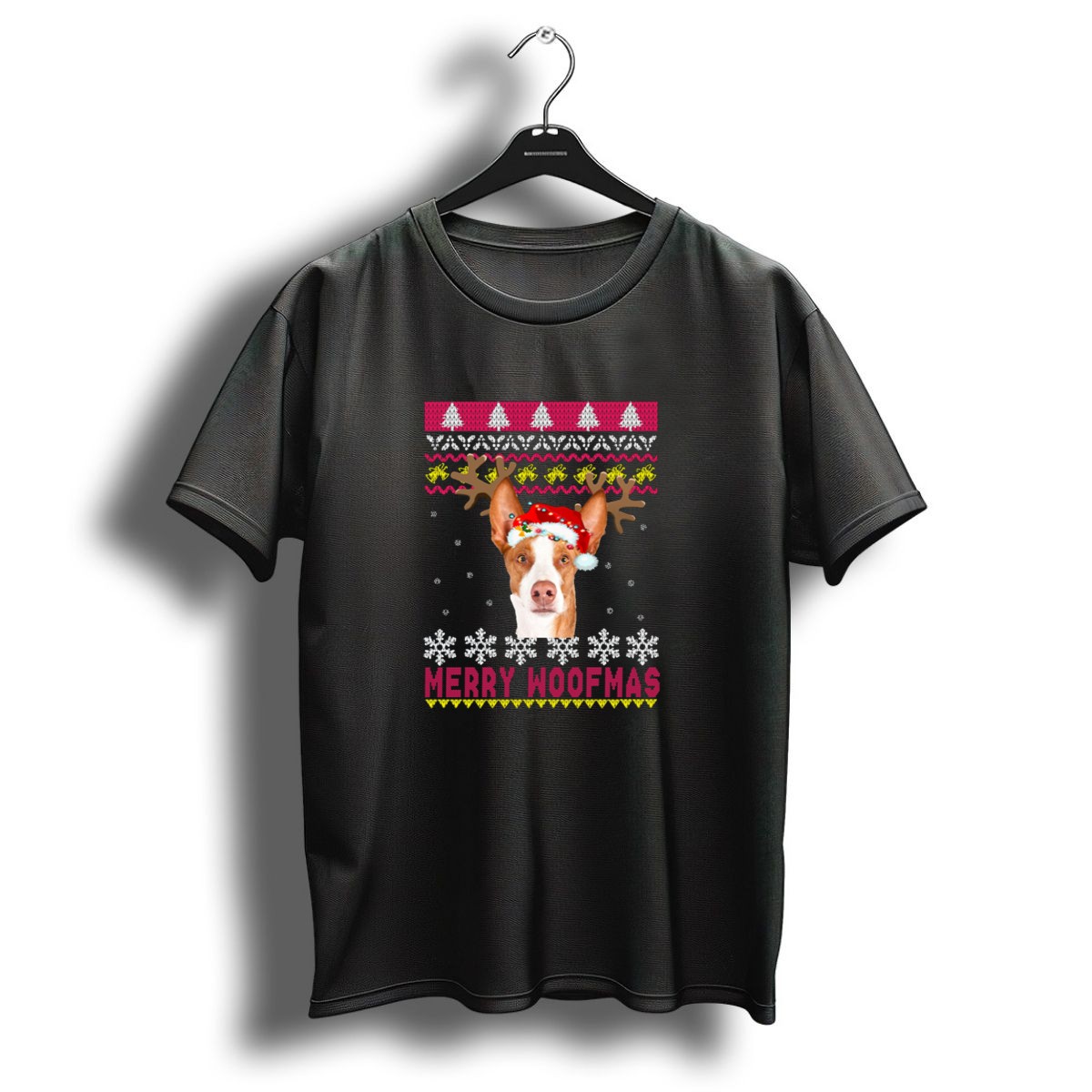 Merry Woofmas Ibizan Hound Antler Santa Hat Snowflakes Christmas T Shirt