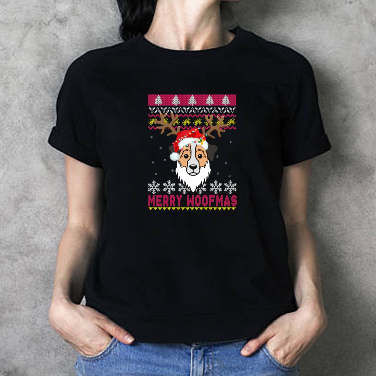 Celebrate the holiday season in style with our Merry Woofmas T-shirt, featuring a playful design that showcases reindeer antlers, Santa hats, and a charming Australian Shepherd surrounded by festive snowflakes and Christmas trees. Perfect for dog lovers and anyone wanting to add a touch of whimsy to their casual wear, this shirt is ideal for themed events, family gatherings, or simply spreading holiday cheer wherever you go. With a fan-made design printed in the USA, it’s a unique way to show off your love for your furry friends during the most wonderful time of the year!