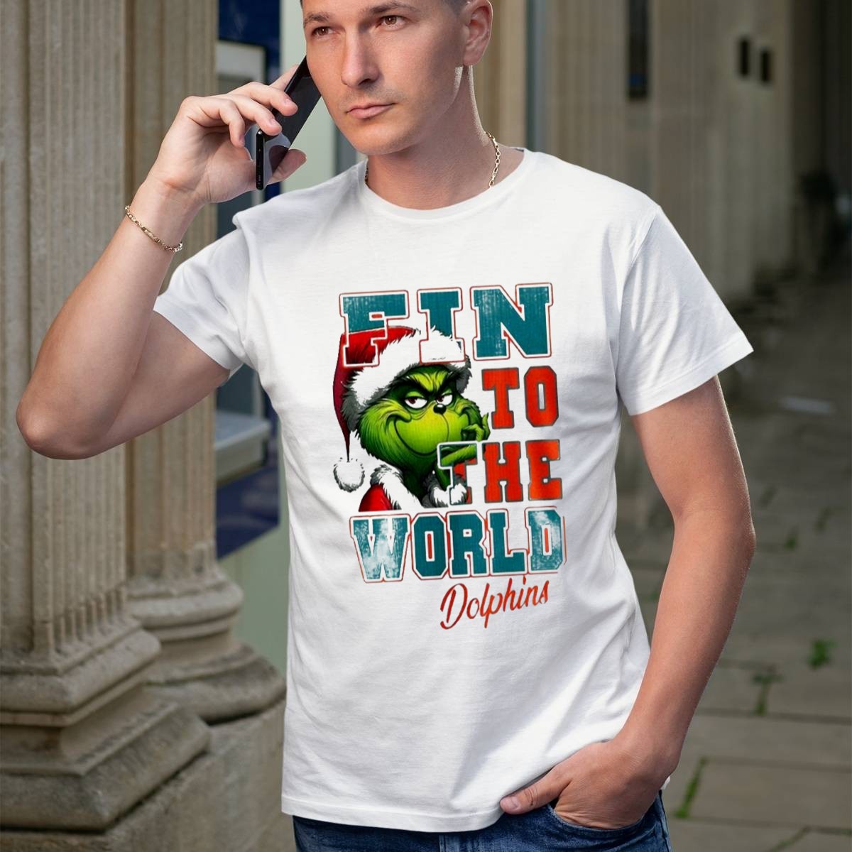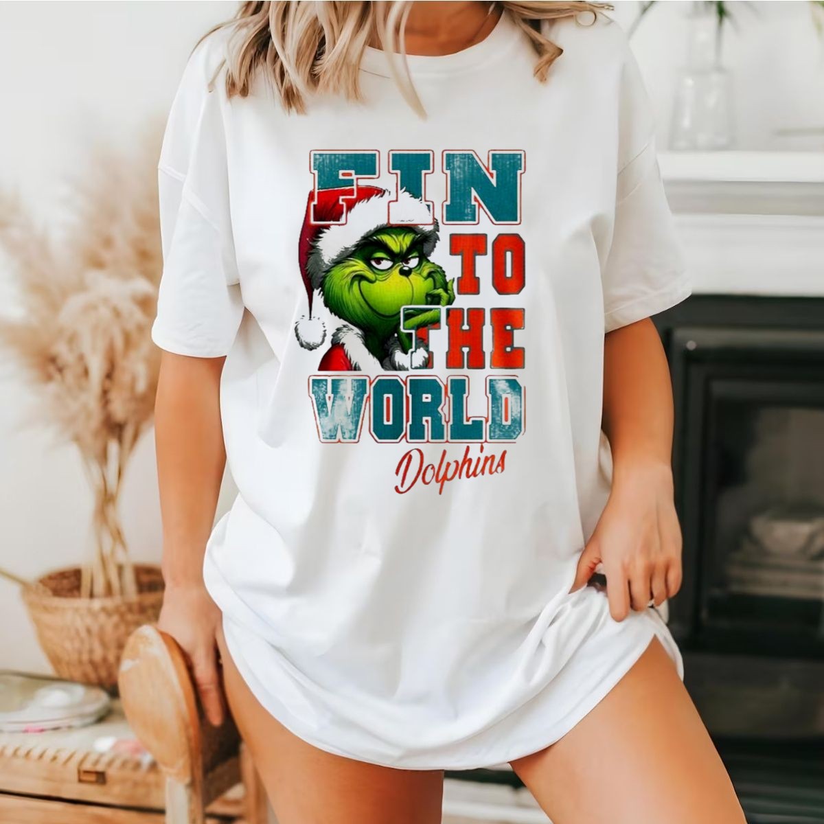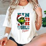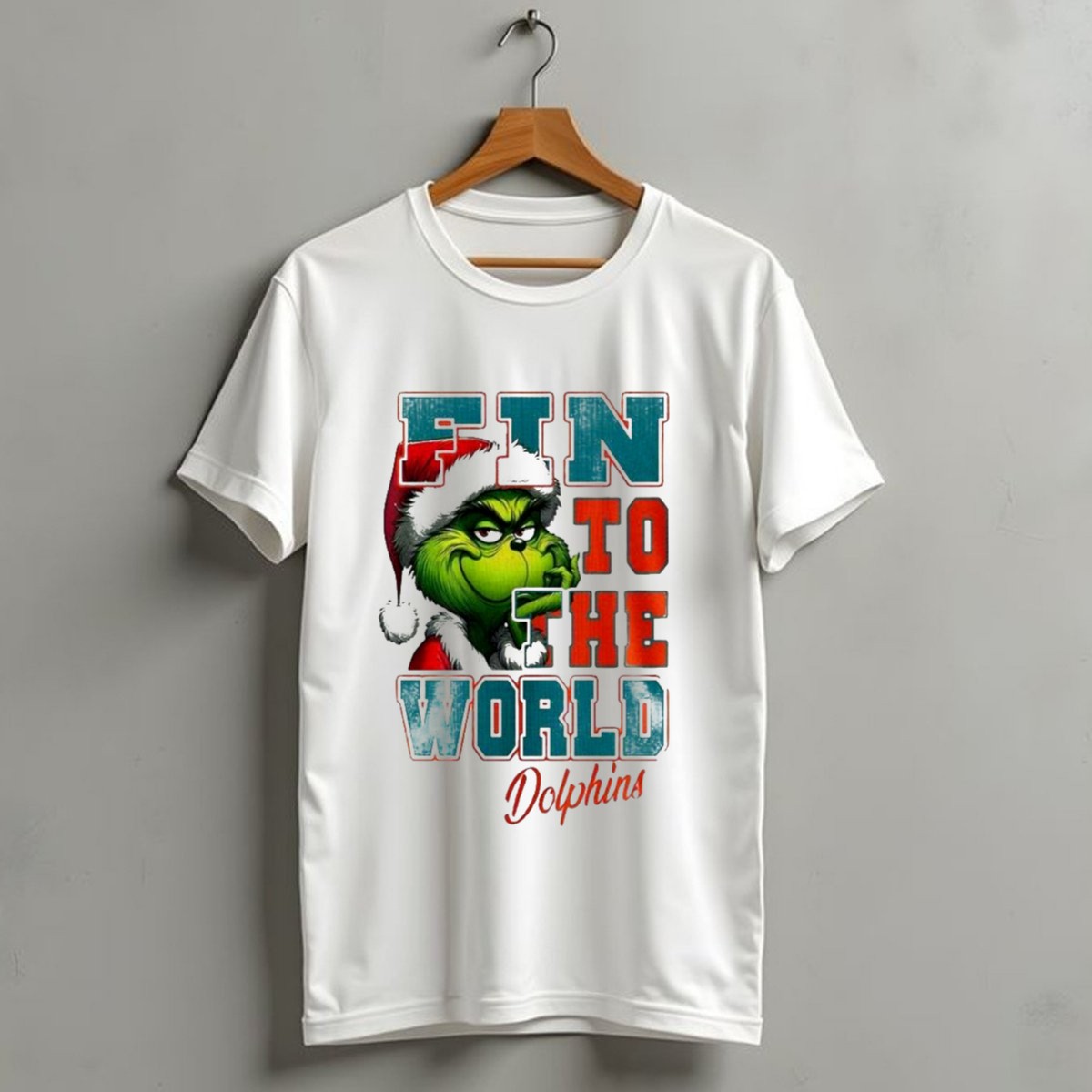 Get into the holiday spirit with our Miami Dolphins Grinch Fin To The World Christmas T-Shirt! Perfect for avid Dolphins fans and Grinch enthusiasts alike, this playful shirt combines festive cheer with your love for football. Whether you’re heading to a themed event, watching the game with friends, or just enjoying a casual day out, this unique fan-made design will make you stand out in style. Printed in the USA, it’s a must-have for anyone looking to showcase their team spirit while embracing the joy of the season.