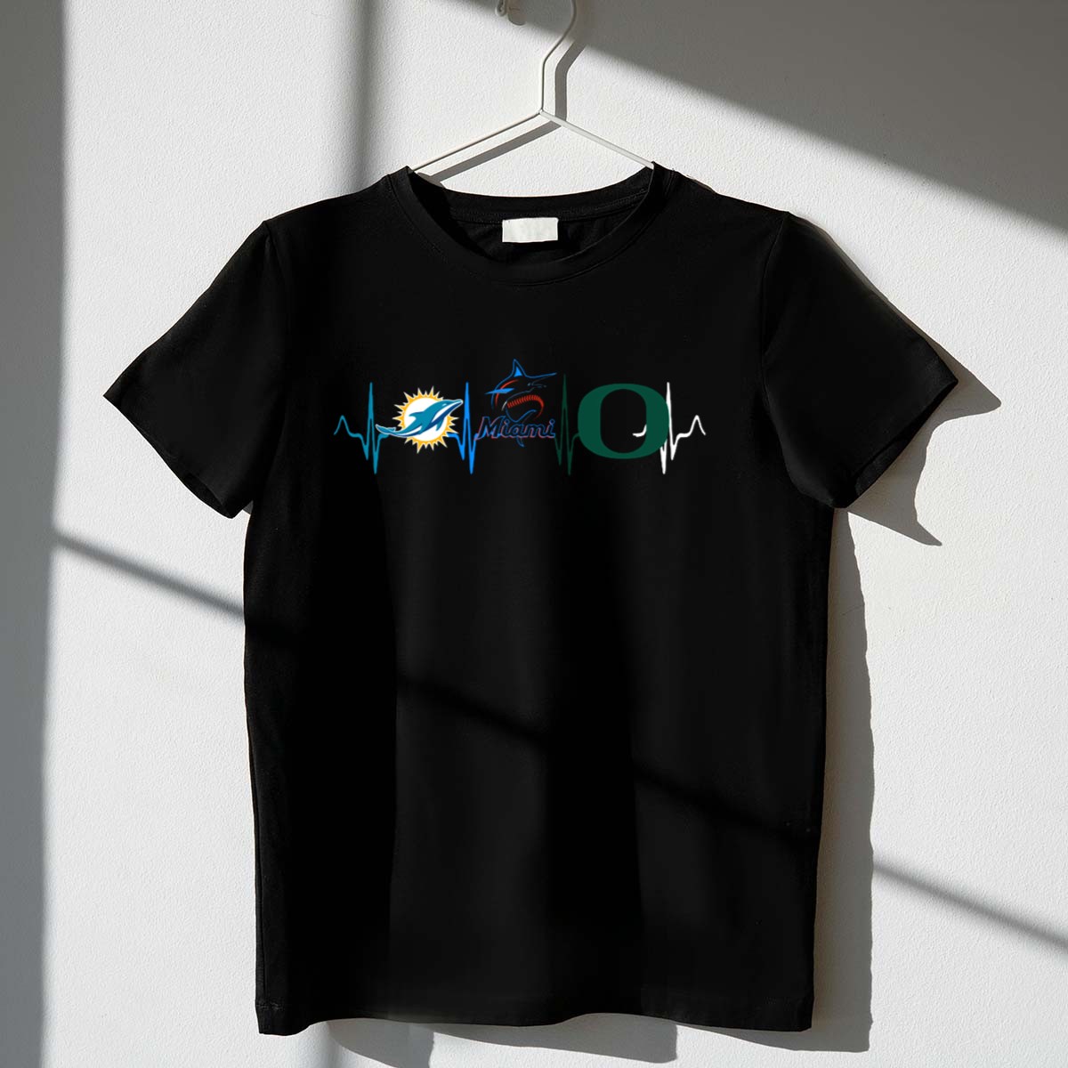Show your love for your favorite teams with the Miami Dolphins, Miami Marlins, and Oregon Ducks Heartbeat T-Shirt! This fan-made design captures the spirit of sports enthusiasts who want to wear their passion proudly. Perfect for casual outings, themed events, or just lounging around, this shirt is a unique addition to any sports lover’s wardrobe, bringing together the best of all your favorite teams in one stylish piece.