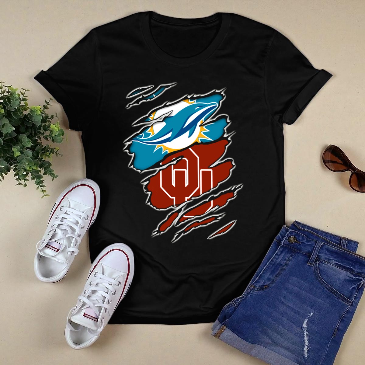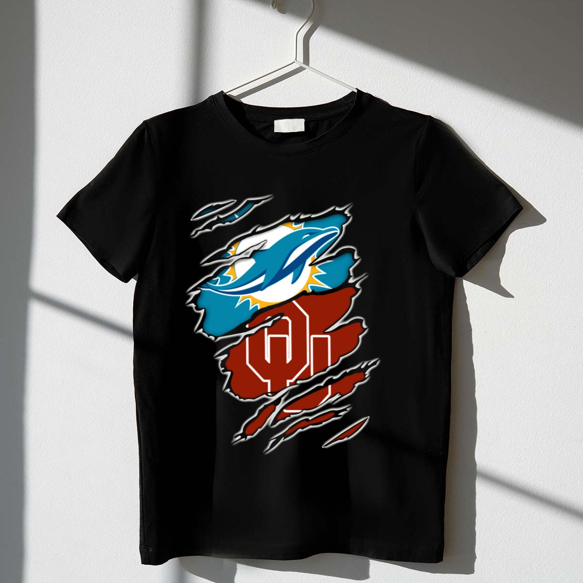 Show your support for the Miami Dolphins and Oklahoma Sooners with this vibrant Teal Aqua and Crimson Red blend T-shirt. Perfect for fans who want to showcase their team spirit, this shirt is ideal for casual outings, themed events, or daily wear. Crafted with a fan-made design printed in the USA, it combines style, comfort, and durability, making it a unique addition to any sports lover’s wardrobe.