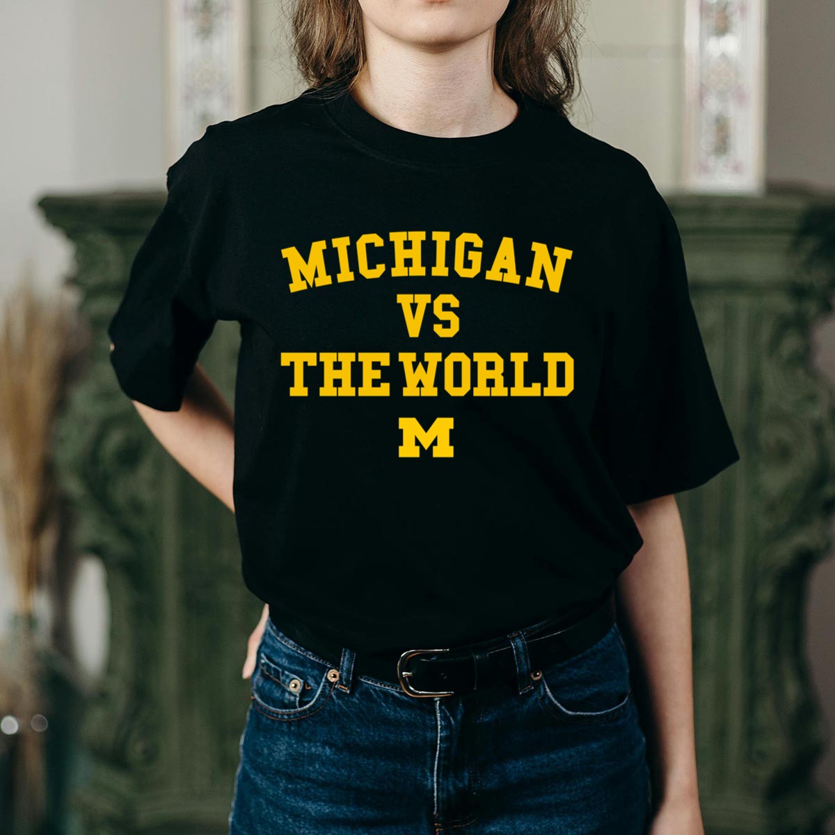 Show your pride for the Wolverines with our Michigan vs the World shirt, designed for true fans who want to make a statement! Perfect for game days, casual outings, or themed events, this shirt combines comfort with a bold design that showcases your allegiance. Crafted for all-season wear, it’s an essential addition to any fan’s wardrobe, making it an ideal gift for yourself or fellow supporters.