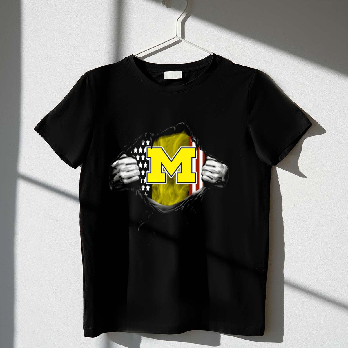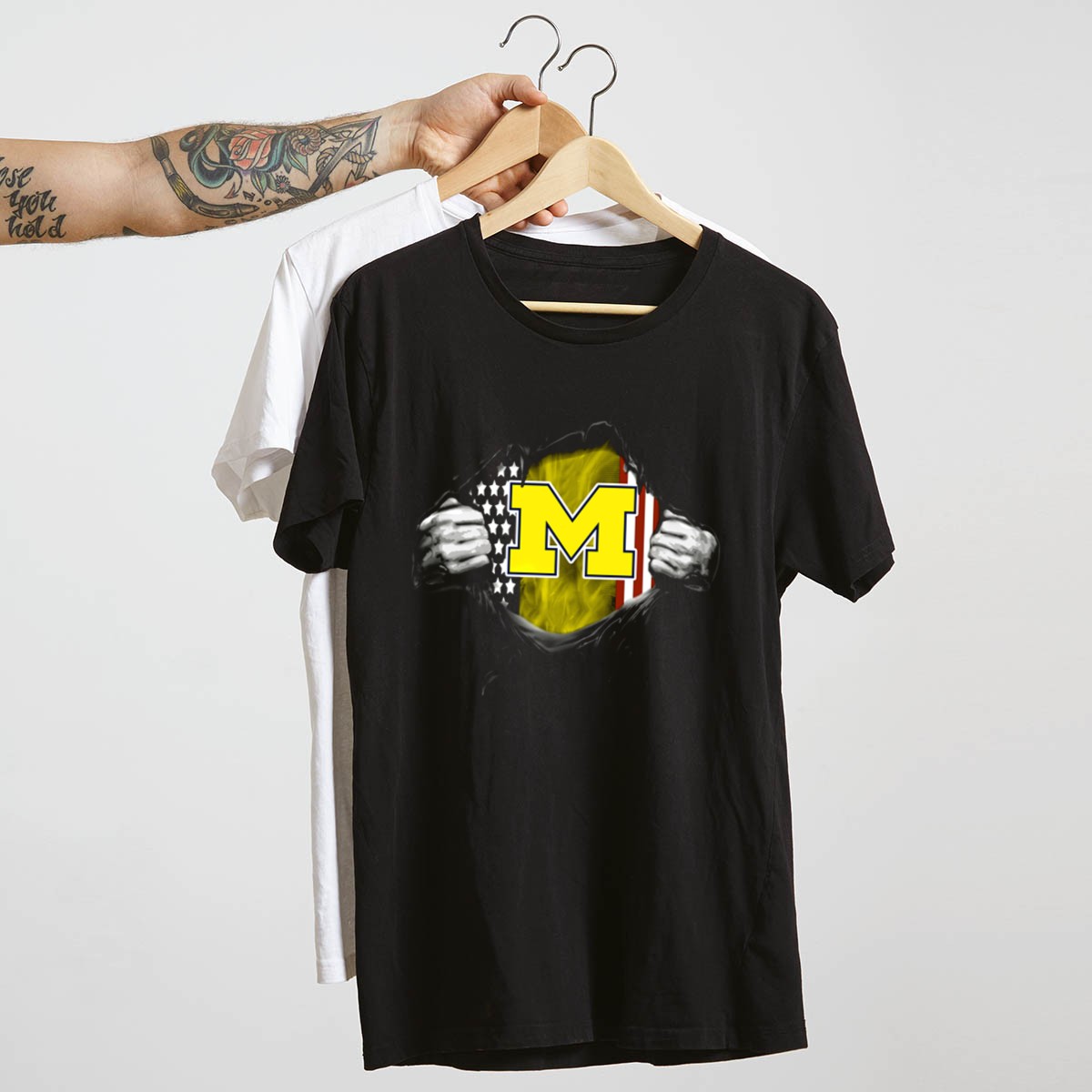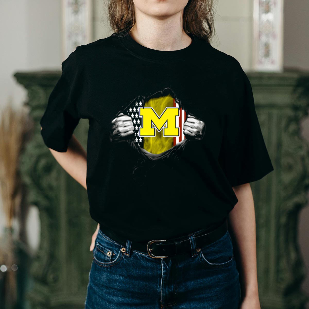 Show your pride for the Michigan Wolverines with our American Flag Ripped T-Shirt, perfect for fans who want to showcase their school spirit in style. This shirt is designed for casual wear, themed events, or everyday outings, making it a versatile addition to any wardrobe. The unique fan-made design, printed in the USA, combines the iconic Wolverines colors with a bold American flag motif, ensuring you stand out while celebrating your team.