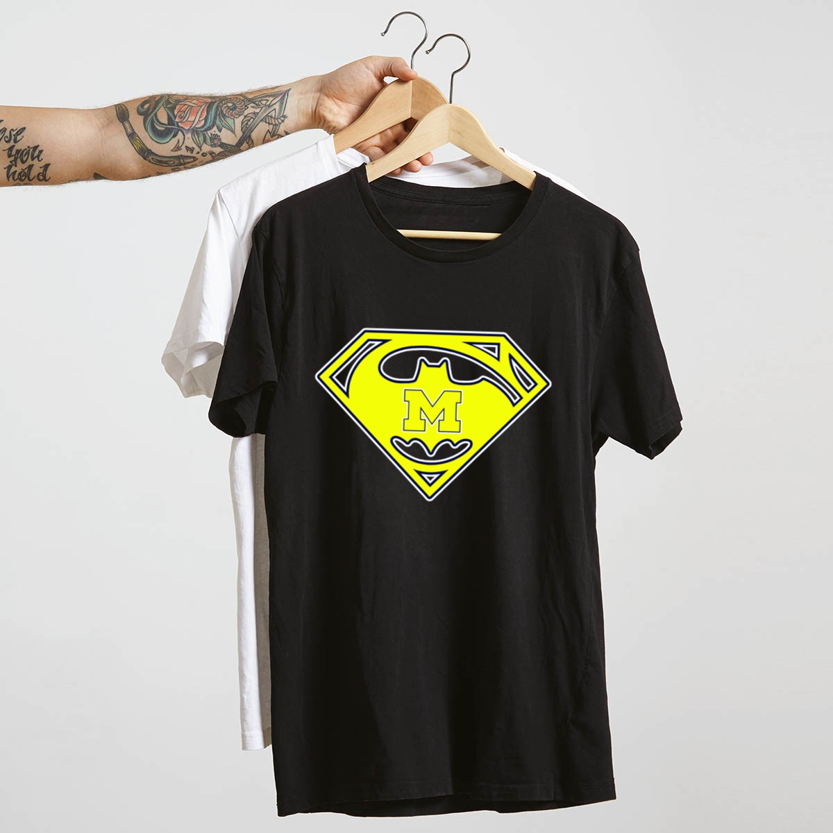 Show your pride for the Michigan Wolverines while embracing the superhero spirit with our fan-made Batman Superman Logo Icon T-Shirt. Perfect for students, alumni, and fans alike, this classic tee is ideal for casual wear, themed events, or just hanging out with friends. Made from high-quality materials and printed in the USA, this shirt combines comfort with a bold design that stands out in any crowd.