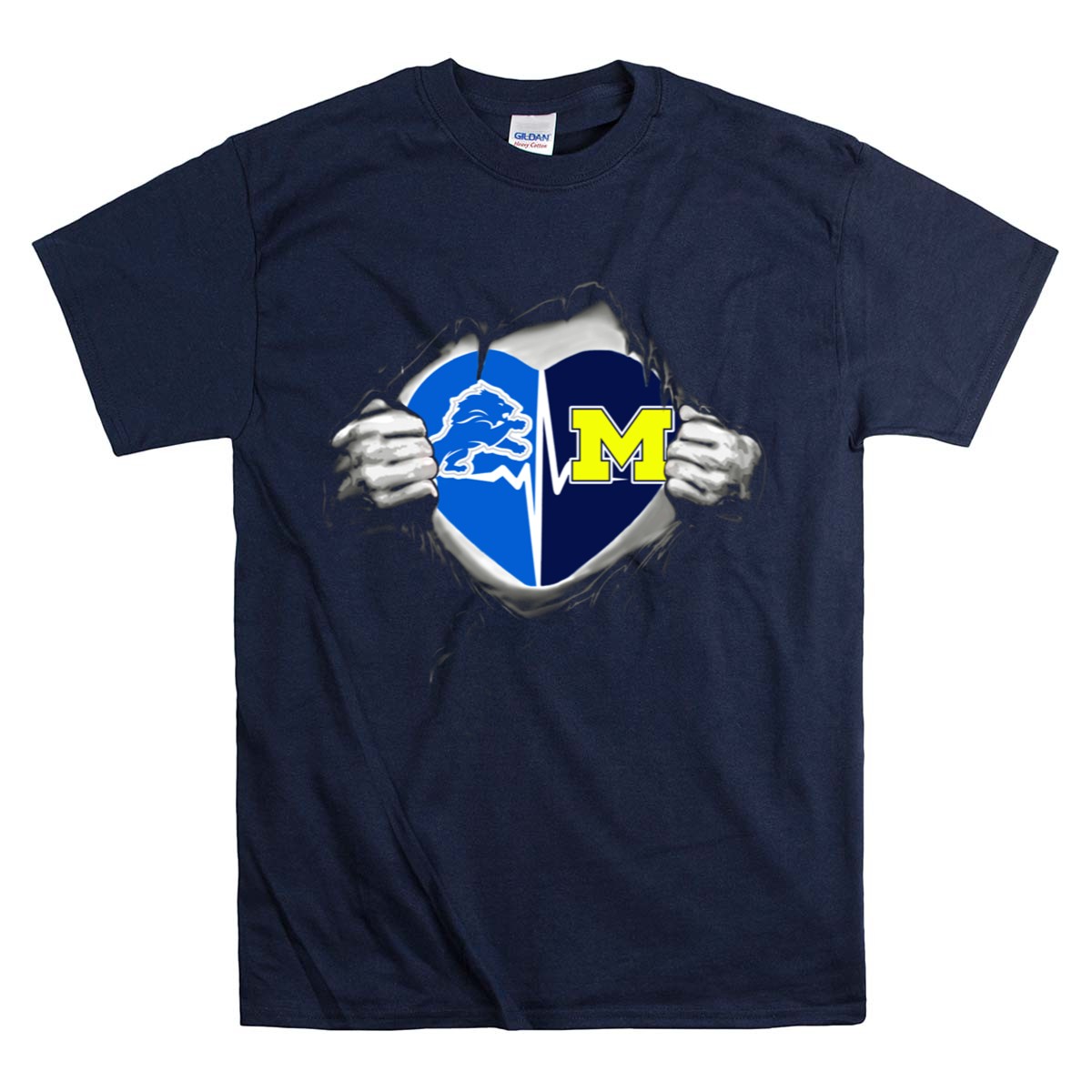 Show your unwavering support for both the Michigan Wolverines and the Detroit Lions with this unique Heartbeat Logo Fusion T-Shirt. Perfect for passionate fans, this shirt is designed for casual wear, themed events, or your everyday outings. Crafted with a fan-made design printed in the USA, it combines iconic team spirit with a stylish twist, making it a must-have addition to any sports enthusiast’s wardrobe.
