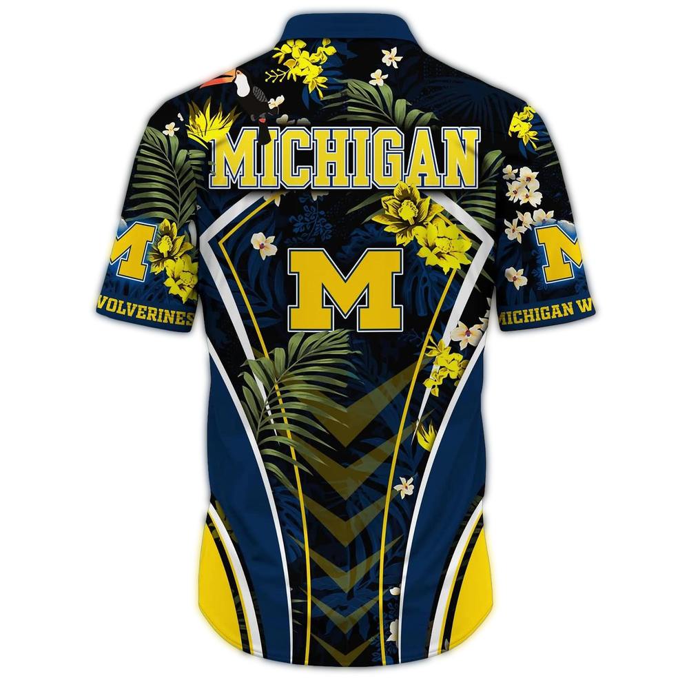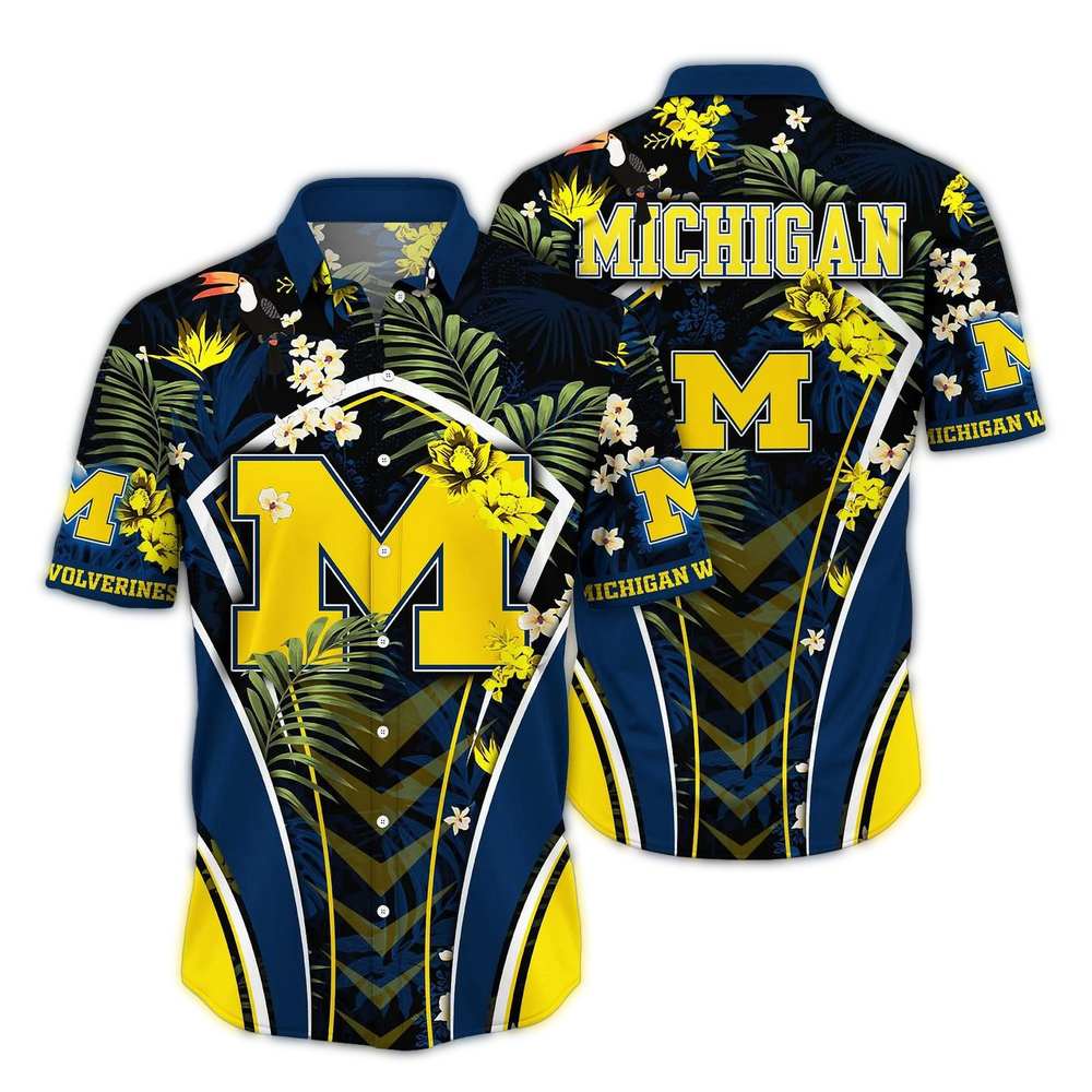 Michigan Wolverines Floral Leafs Pattern Uniform Hawaiian Shirt