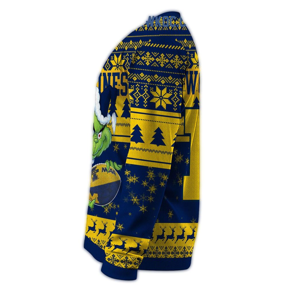 Get ready to spread some holiday cheer with our Michigan Wolverines Grinch Christmas Ugly Sweater! Perfect for die-hard fans and festive spirits alike, this fun piece is ideal for holiday parties, cozy nights in, or cheering on your team while staying warm. With its playful design and comfortable fit, it’s bound to become your go-to sweater for all winter occasions!