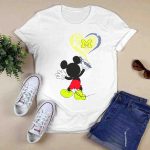 Michigan Wolverines M In Yellow And Blue Heart With Disney Mickey Character T-Shirt