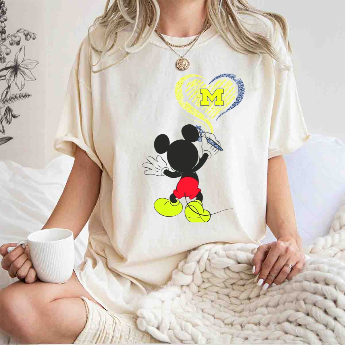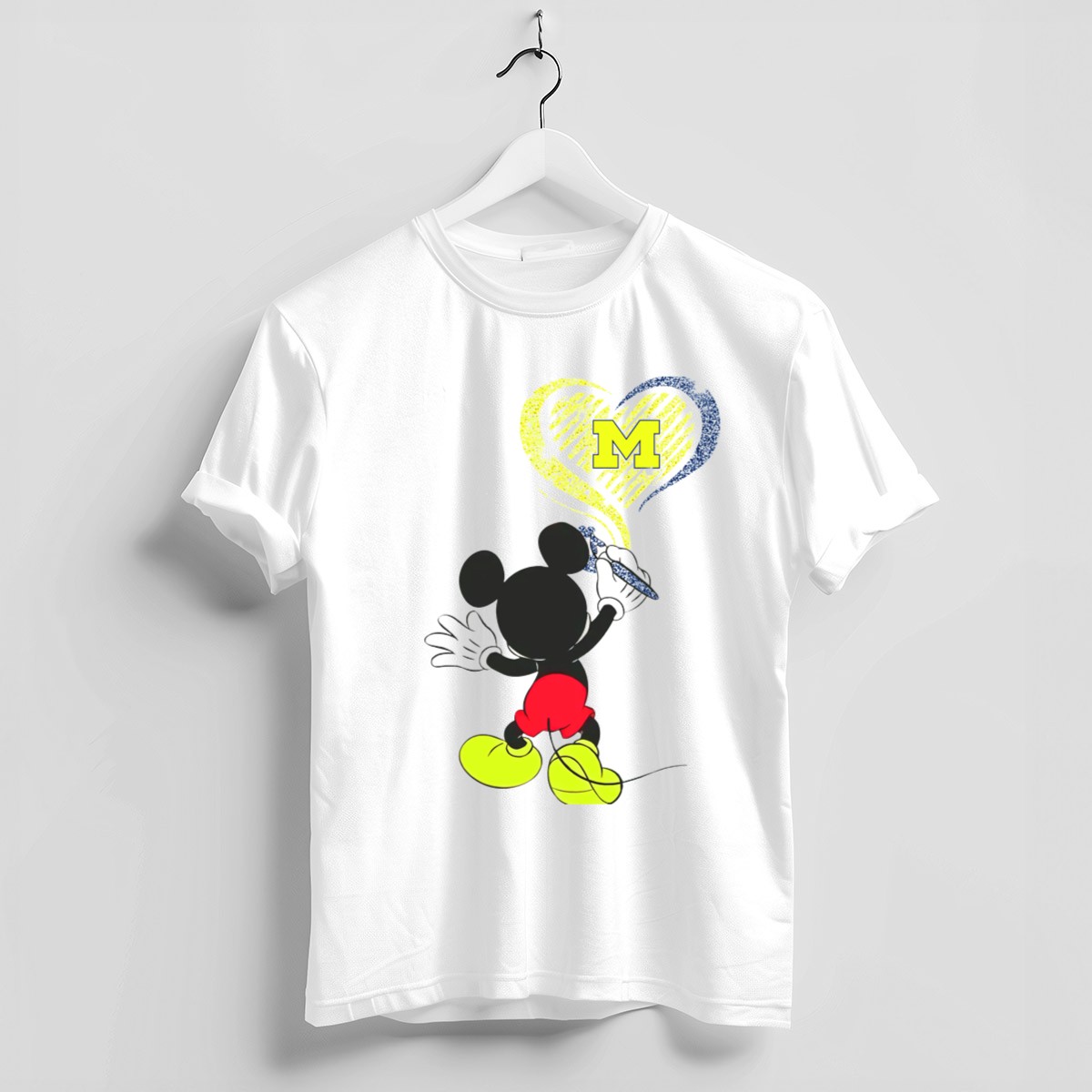 Be the first to review “Michigan Wolverines M In Yellow And Blue Heart With Disney Mickey Character T-Shirt”