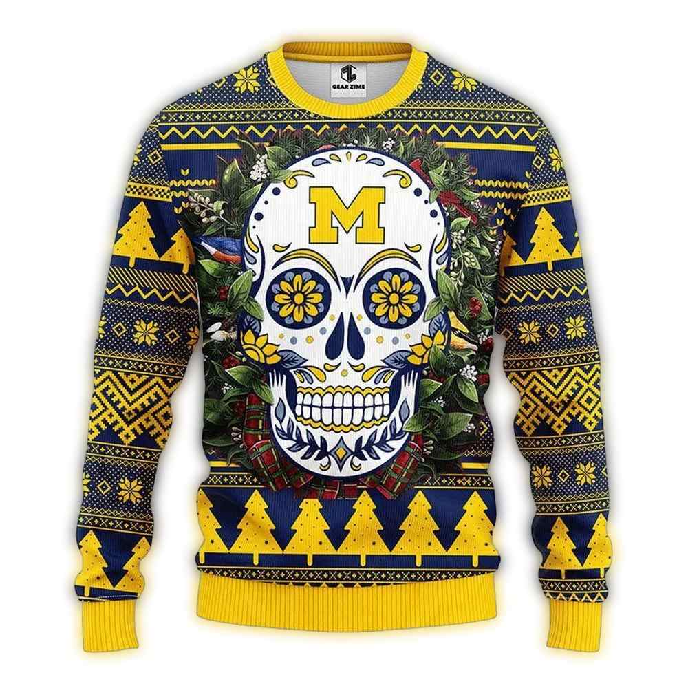 Get ready to showcase your team spirit in a wildly fun way with our Michigan Wolverines Skull Flower Ugly Sweater! Perfect for passionate Wolverines fans, this sweater is ideal for holiday parties, cozy game nights, or simply lounging at home while keeping the festive vibes alive. With its unique design combining skulls and floral elements, it’s sure to turn heads and spark conversations!