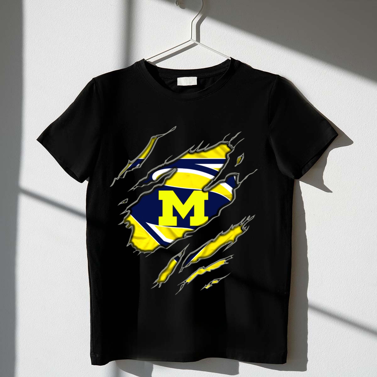Show off your love for the Michigan Wolverines with our eye-catching Superman Logo Claw Rip T-Shirt! This fan-made design is perfect for dedicated Wolverines supporters who want to make a statement at casual events, game days, or just out and about. Made with 100% cotton, this classic fit tee combines comfort and style, allowing you to rep your favorite team in a unique and fashionable way.