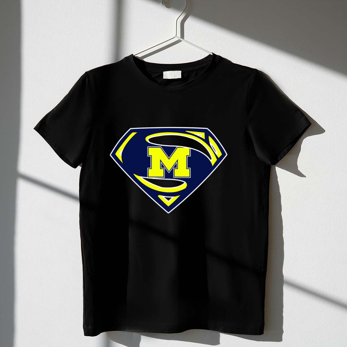 Show your school spirit with our Michigan Wolverines Superman Logo Mashup T-Shirt! This fan-made design perfectly blends the iconic Michigan Wolverines logo with the beloved Superman emblem, making it an ideal choice for die-hard fans and superhero enthusiasts alike. Whether you’re cheering from the stands at a game, attending a themed event, or simply enjoying a casual day out, this shirt is a unique way to showcase your pride and style.