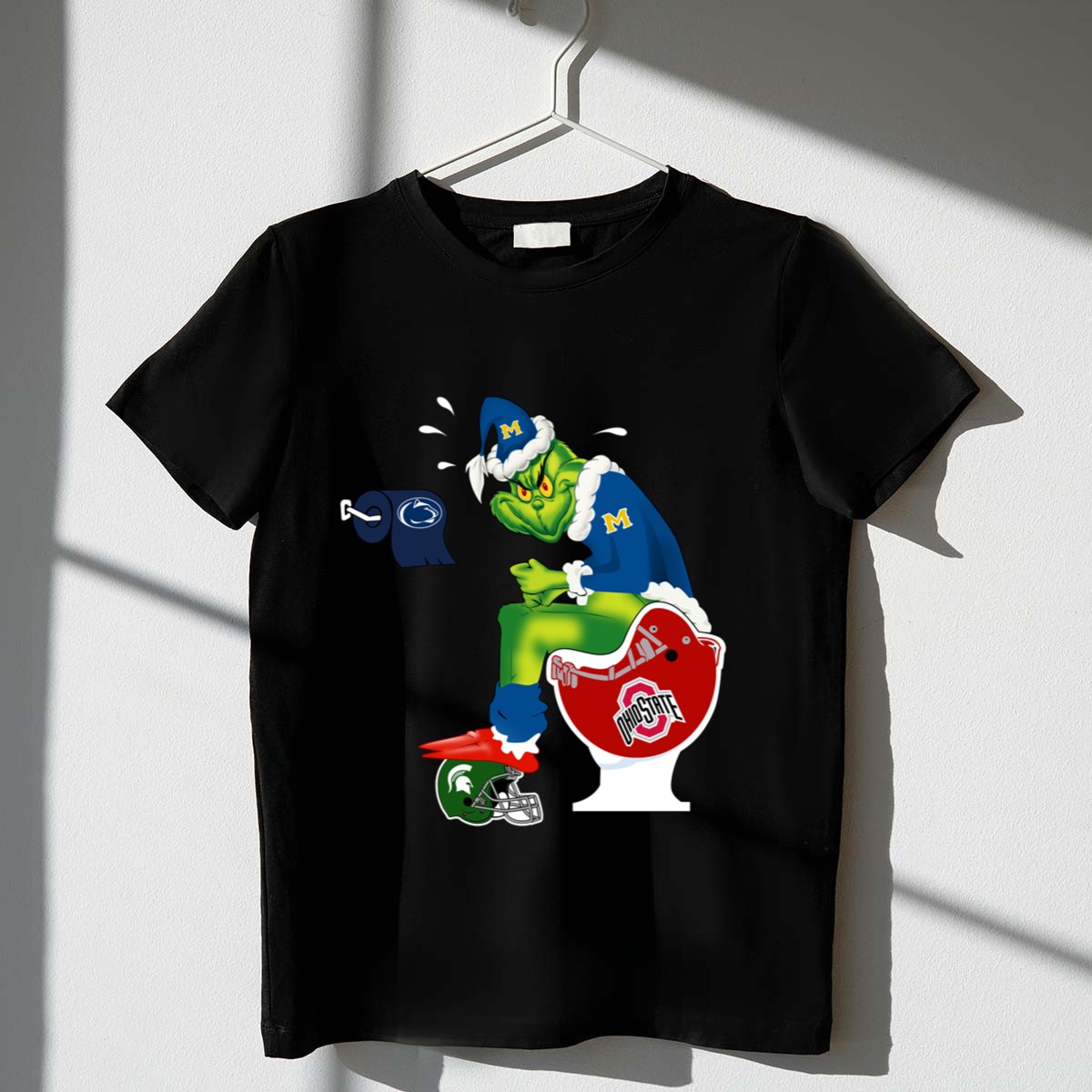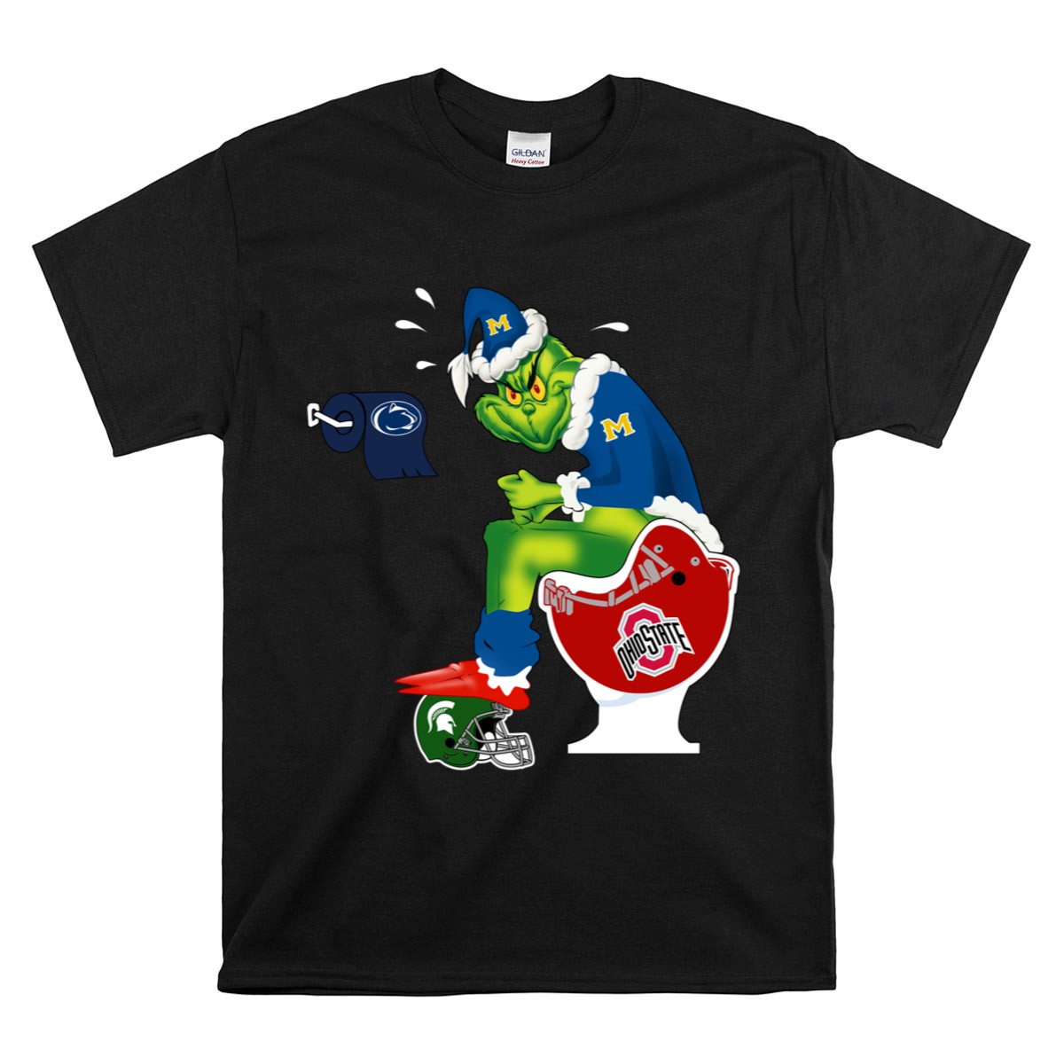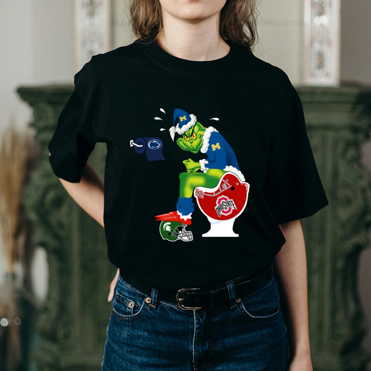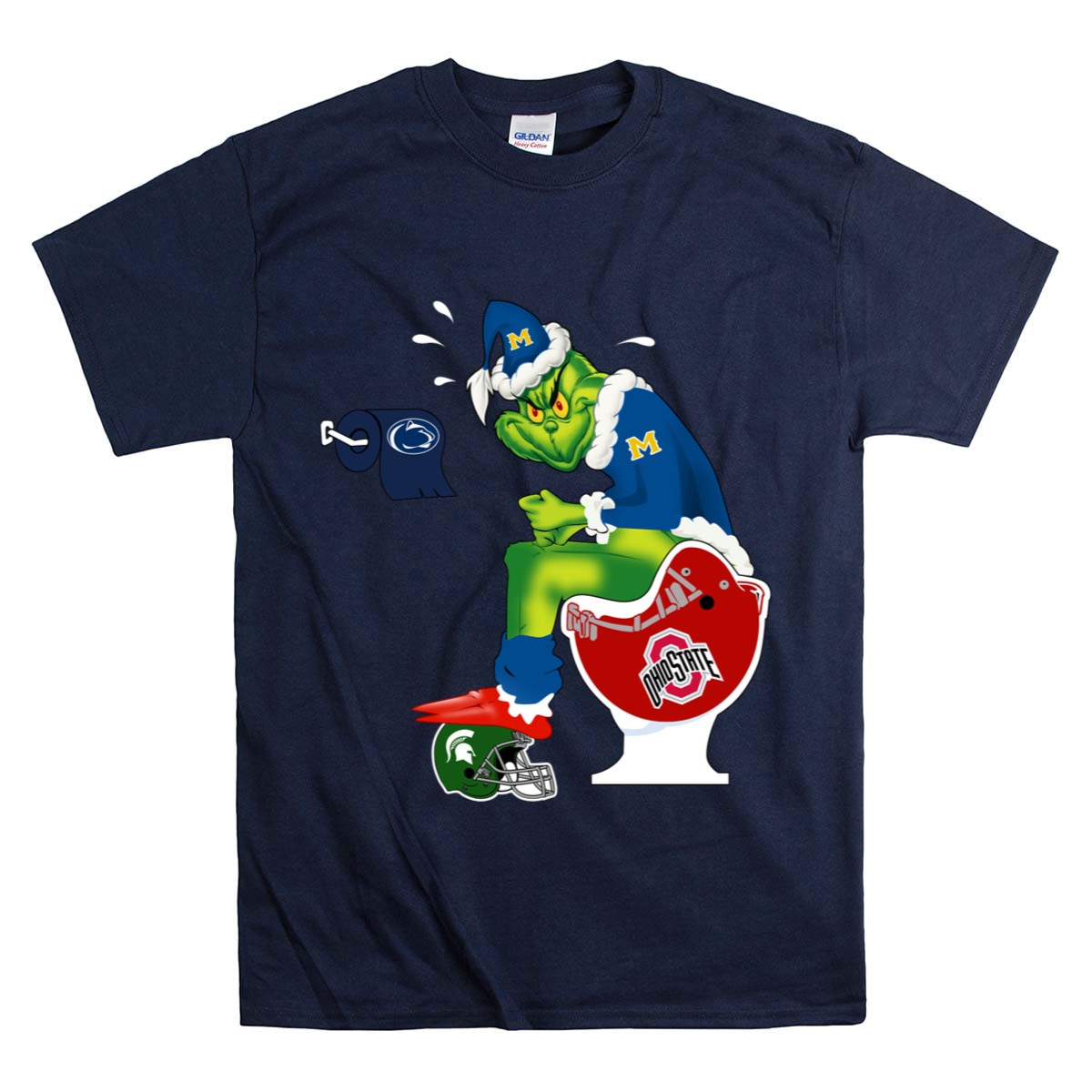 Celebrate the holiday season with a playful twist in our Michigan Wolverines The Grinch Santa Toilet Ohio State Buckeyes Christmas T-shirt! Perfect for die-hard Wolverines fans and Grinch enthusiasts alike, this shirt brings humor and team spirit together, making it an ideal choice for casual wear, holiday parties, or themed events. With its unique fan-made design printed right here in the USA, you’ll stand out while showcasing your love for both Michigan and Christmas cheer!