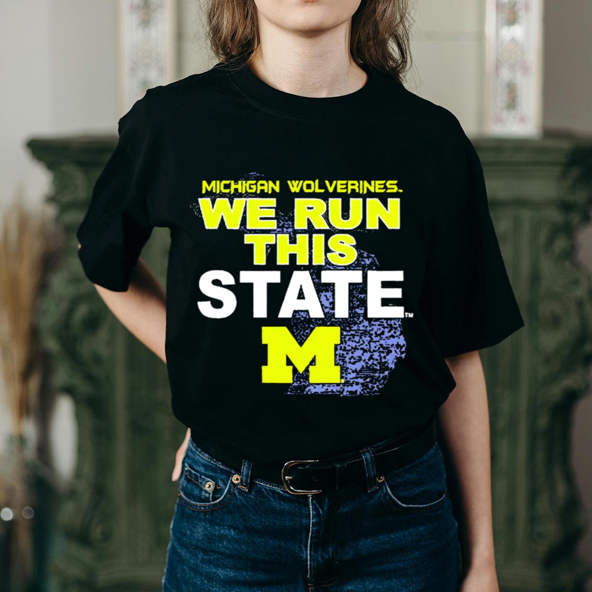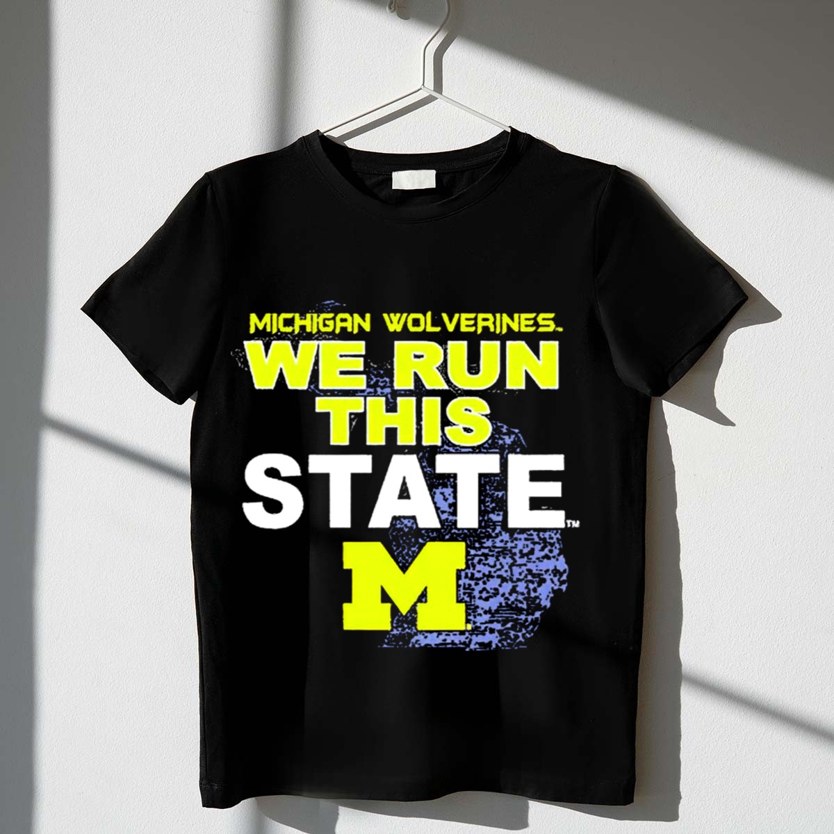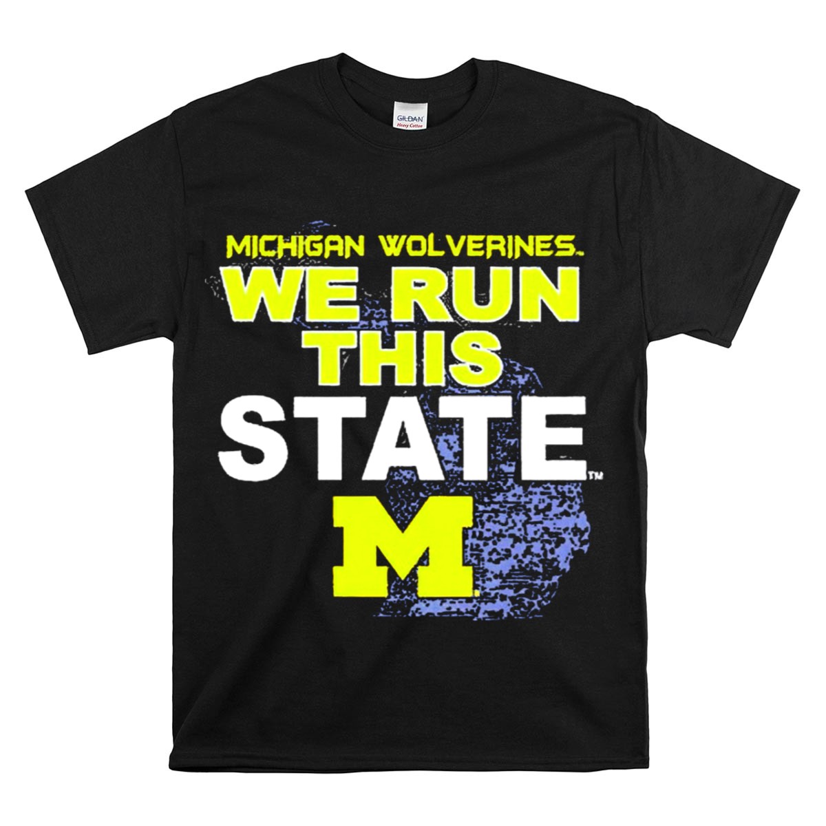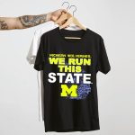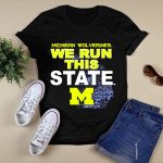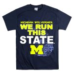 Show your unwavering support for the Michigan Wolverines with our exclusive “We Run This State” graphic T-shirt! Perfect for passionate fans, this shirt features a striking M logo intertwined with the iconic Michigan map, making it a must-have for game days, casual outings, or themed events. Crafted for comfort and style, it embodies the spirit of Michigan pride and is designed for those who live and breathe Wolverines football.