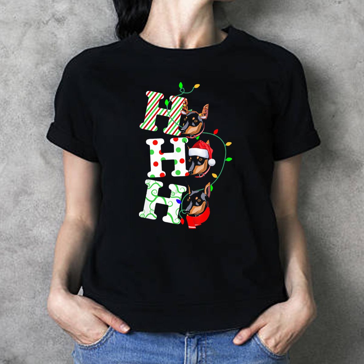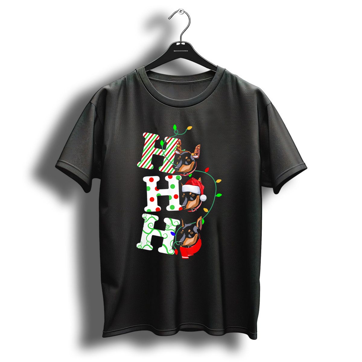 Celebrate the holiday season in style with our Miniature Pinscher Ho Ho Ho Christmas Santa Hat Festive Lights T-Shirt! Perfect for dog lovers and festive enthusiasts alike, this shirt features a playful design that showcases your love for Miniature Pinschers while adding a touch of holiday cheer. Ideal for casual wear, themed events, or cozy family gatherings, it’s a must-have for all-season festivities. Made with a soft and breathable fabric, this shirt ensures comfort throughout your celebrations.