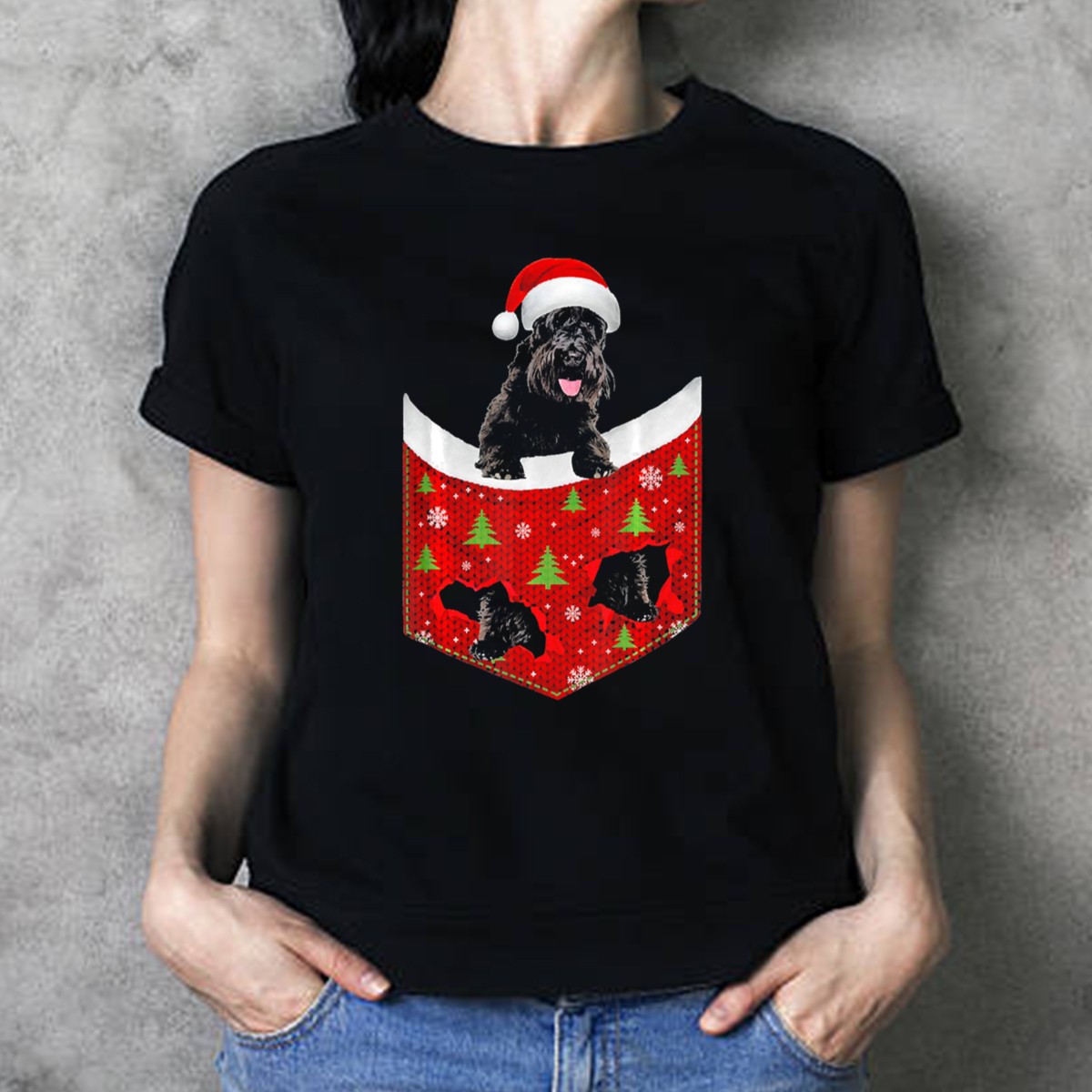 Be the first to review “Miniature Schnauzer Christmas Santa Hat Trees Snowflakes Pocket T-Shirt”