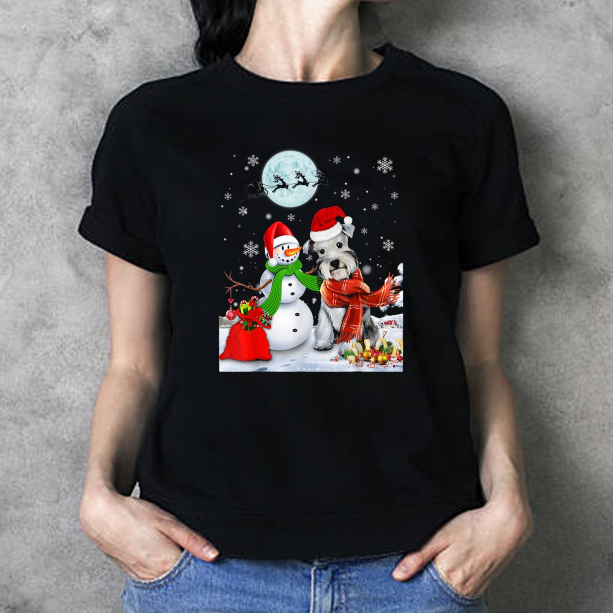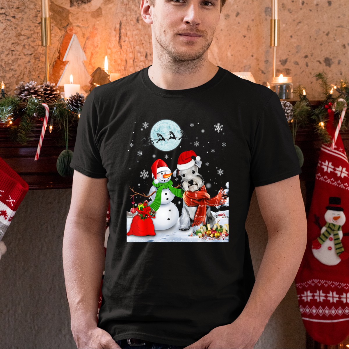 Be the first to review “Miniature Schnauzer Santa Snowman Christmas Moon Snowflakes T-Shirt”