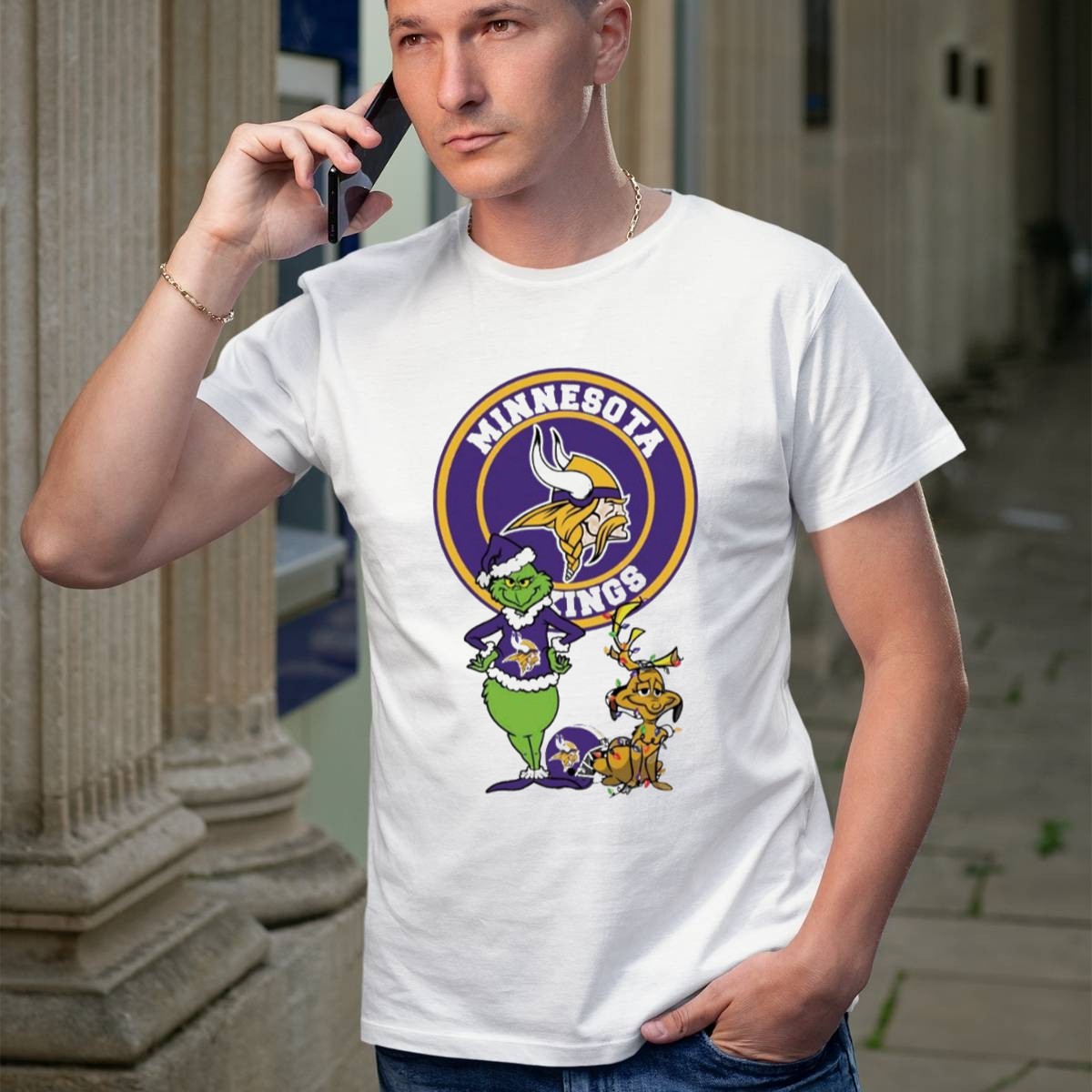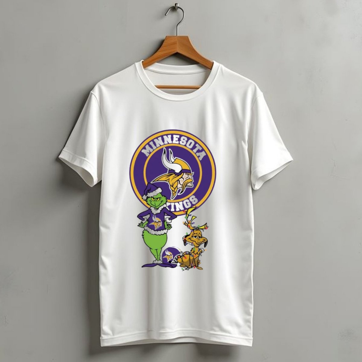 Celebrate the holiday season with our Minnesota Vikings Grinch And Max Merry Christmas T-Shirt! Perfect for die-hard fans and holiday enthusiasts alike, this fun and festive tee captures the spirit of Christmas with a playful twist. Whether you’re cheering on the Vikings at a game, attending a themed event, or simply enjoying daily wear during the holiday season, this shirt is a must-have for fans who want to showcase their love for both their team and the festive spirit. Plus, with a fan-made design printed right here in the USA, you can wear it with pride!