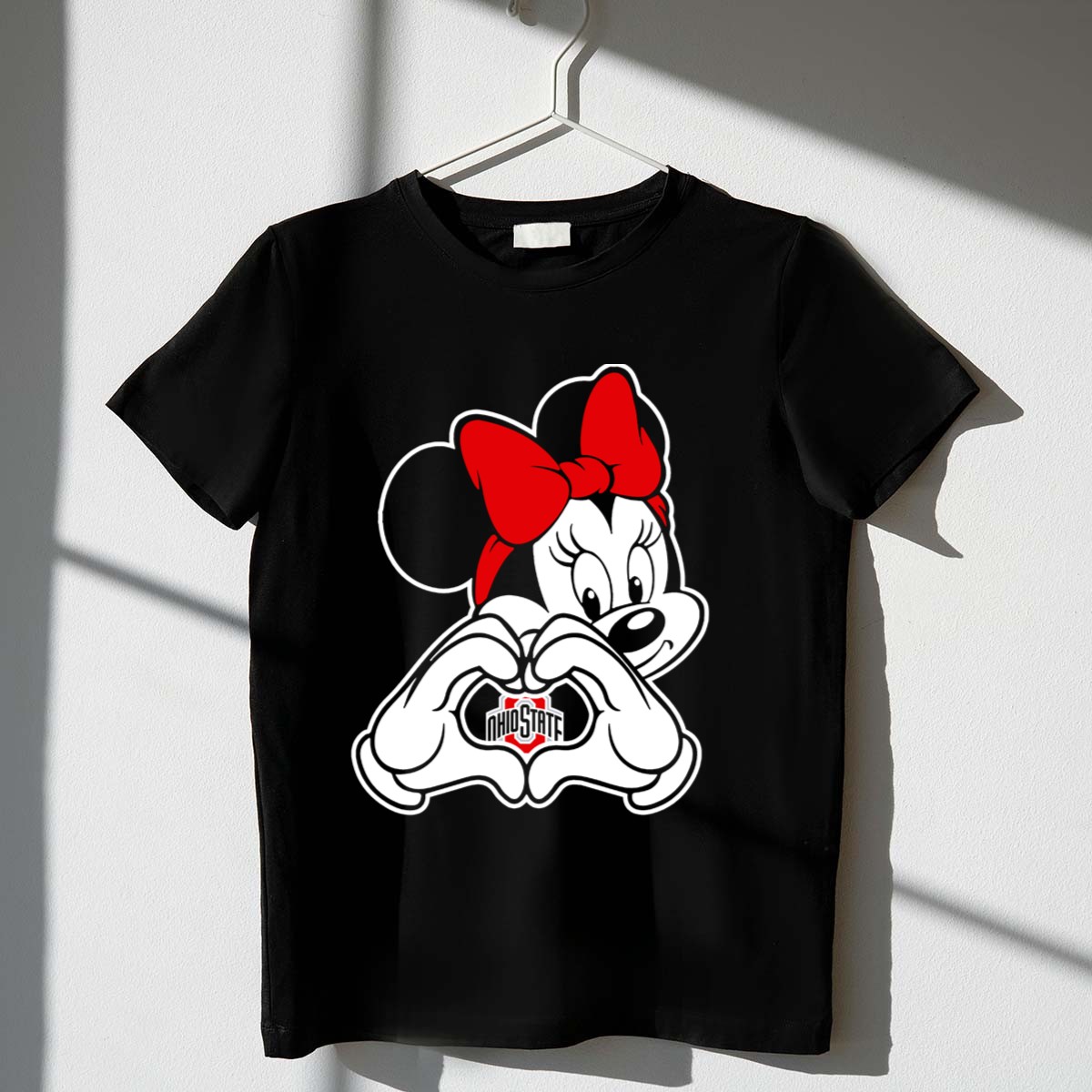 Show your love for both Minnie Mouse and the Ohio State Buckeyes with this charming fan-made graphic T-shirt! Perfect for students, alumni, and devoted fans alike, this shirt is ideal for casual wear, themed events, or just showcasing your Buckeye pride every day. With its unique heart hands design, you can express your passion for your favorite team in a fun and stylish way, all while enjoying the comfort of this high-quality tee printed right here in the USA.