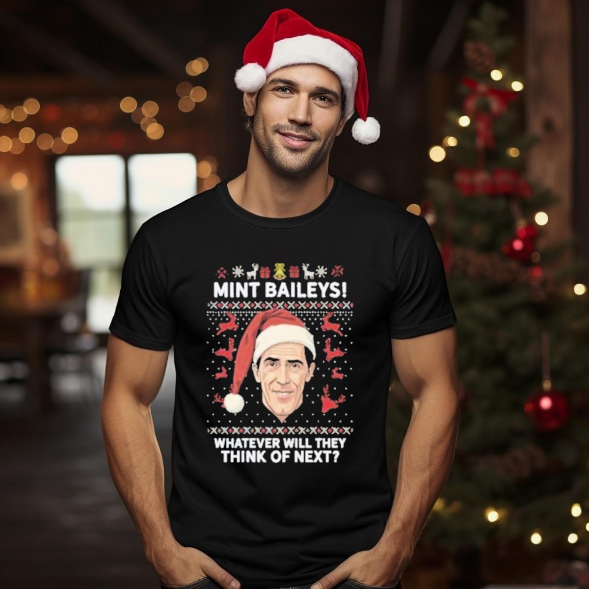 Get ready to spread some holiday cheer with our Mint Baileys Whatever Will They Think Of Next Santa Hat Ugly Christmas T-Shirt! Perfect for anyone who loves to celebrate the festive season with a twist of humor, this shirt is ideal for casual wear, themed events, or just daily outings during the holidays. The eye-catching fan-made design, proudly printed in the USA, ensures you stand out while keeping the festive spirit alive!