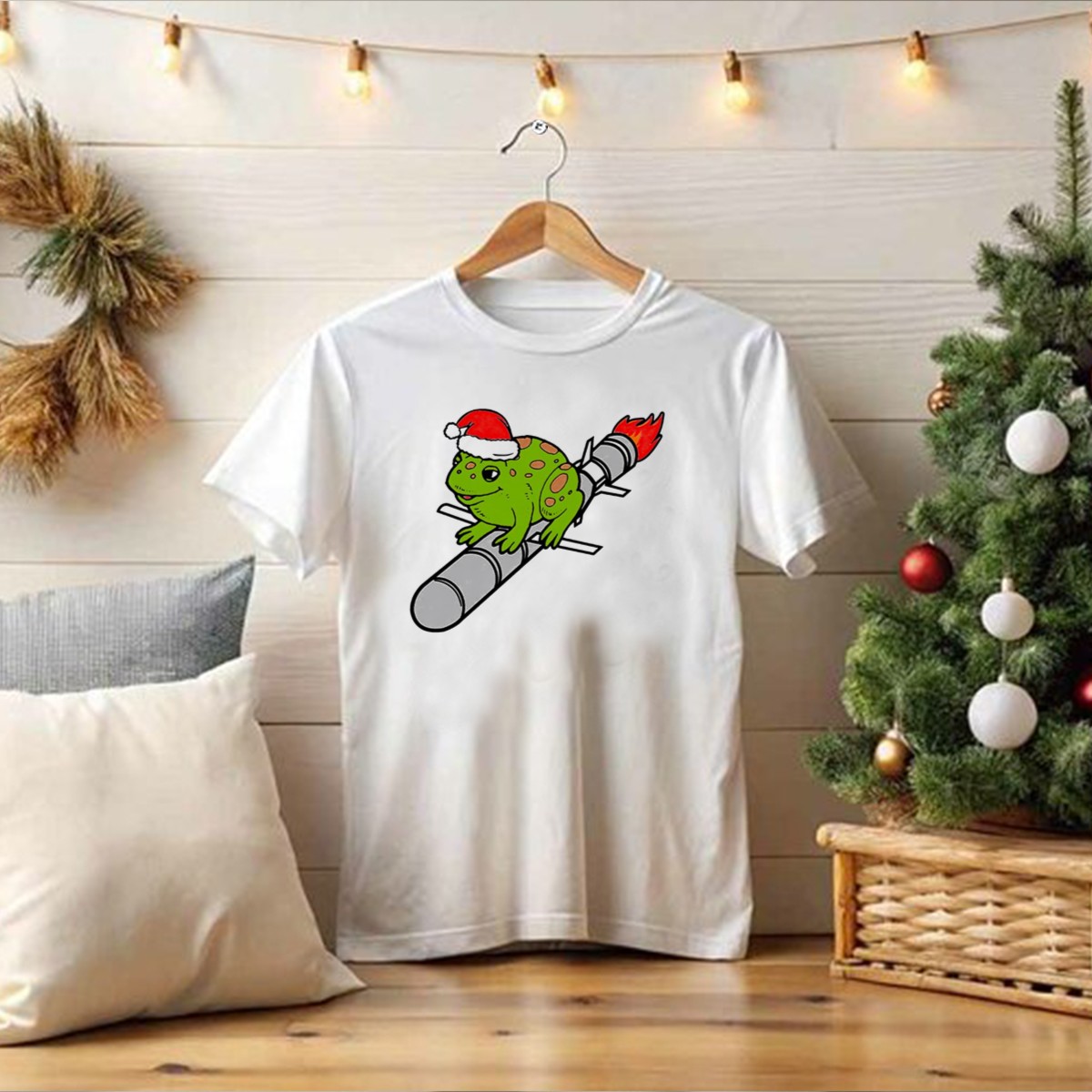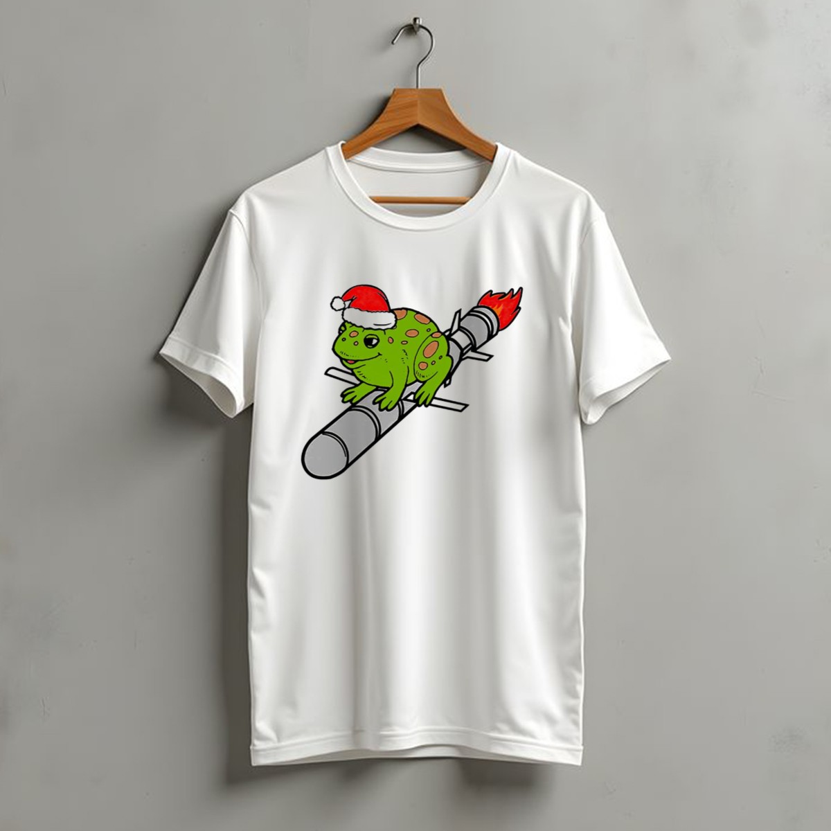 Be the first to review “Missile Toad Christmas Frog With Santa Hat Riding A Rocket T-Shirt”