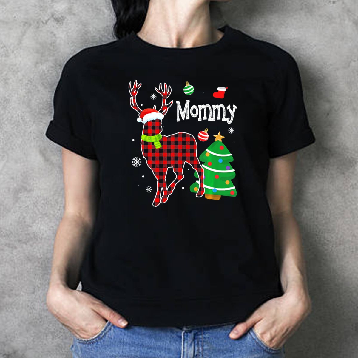 Mommy Red Plaid Deer Christmas Tree Ornaments T Shirt