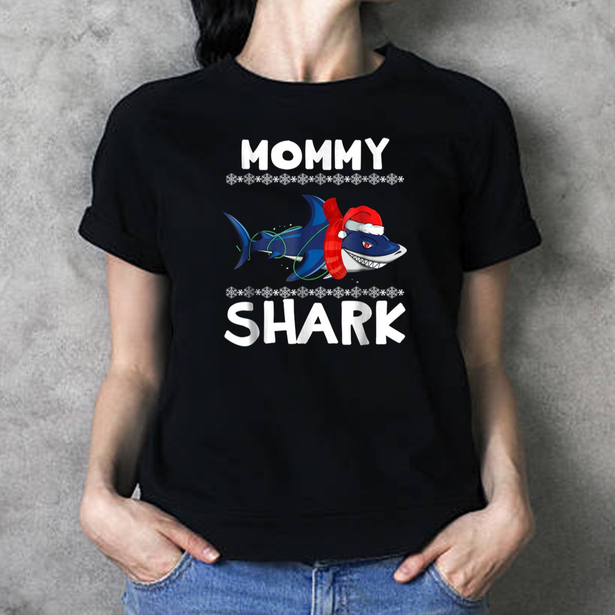 Be the first to review “Mommy Shark Christmas Family With Santa Hat And Snowflakes T Shirt”
