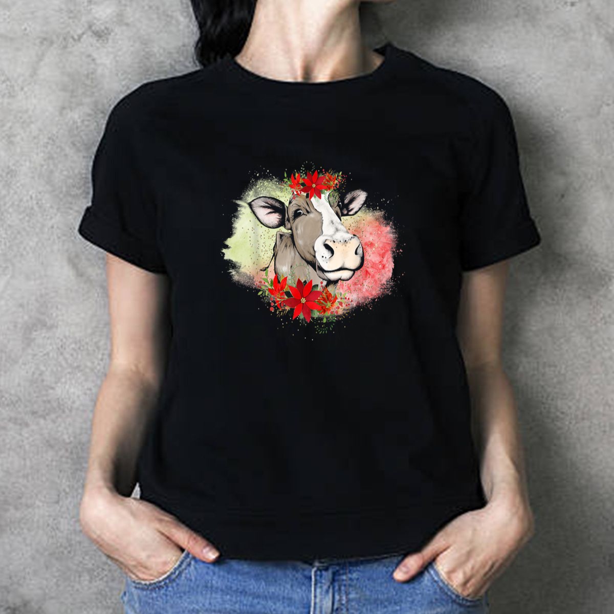 Be the first to review “Moooorry Christmas Holiday Cow Poinsettia T-Shirt”
