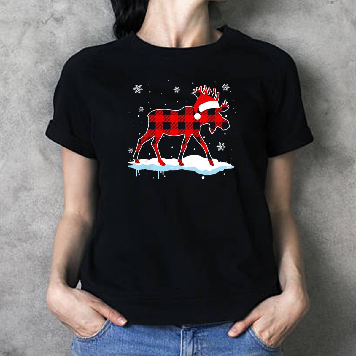Be the first to review “Moose Merry Christmas Red Plaid Santa Hat Snowflakes T Shirt”
