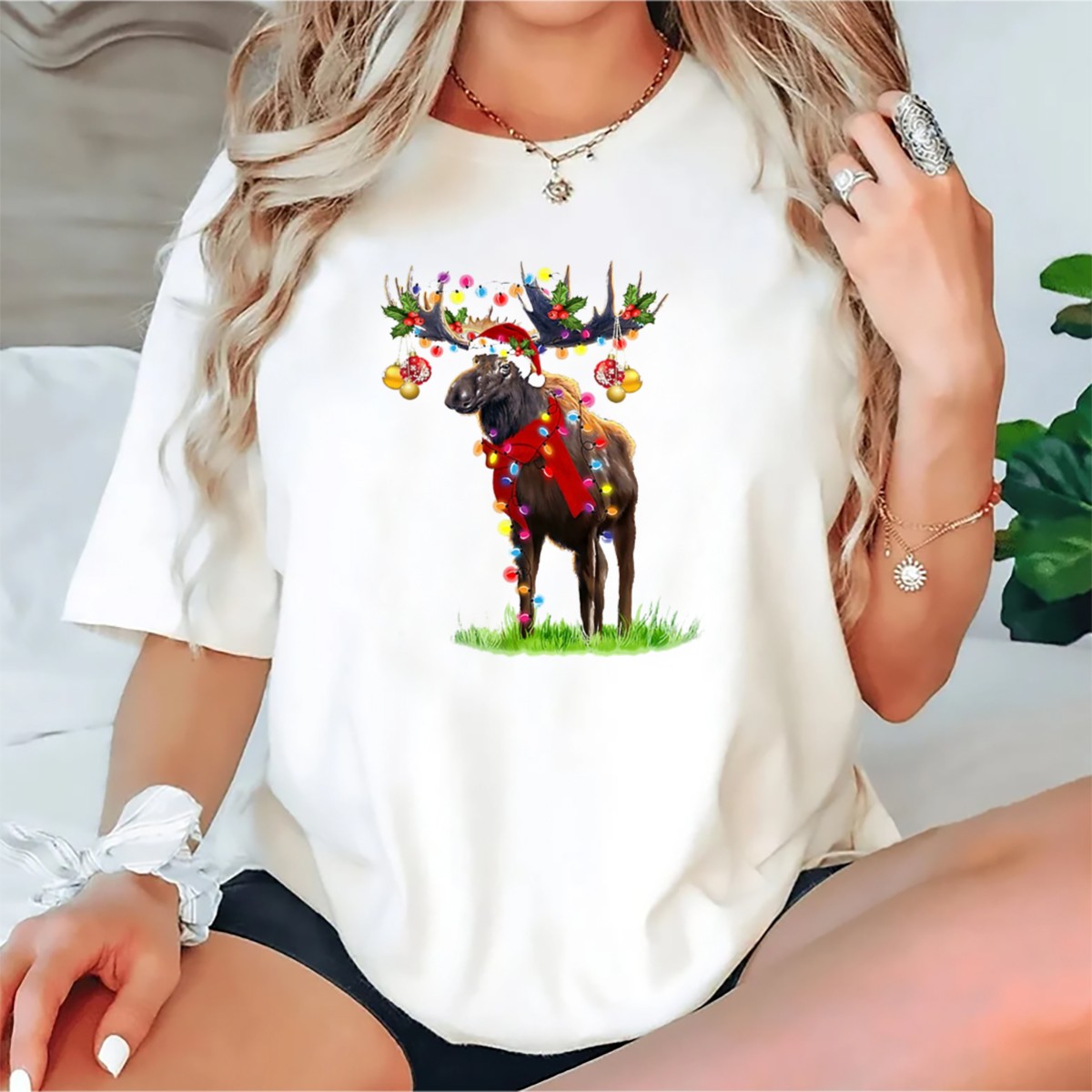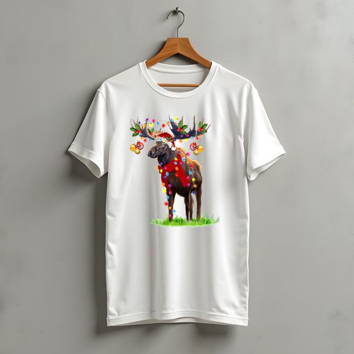Be the first to review “Moose Santa Reindeer Christmas Lights Holiday Deïåcor T-Shirt”