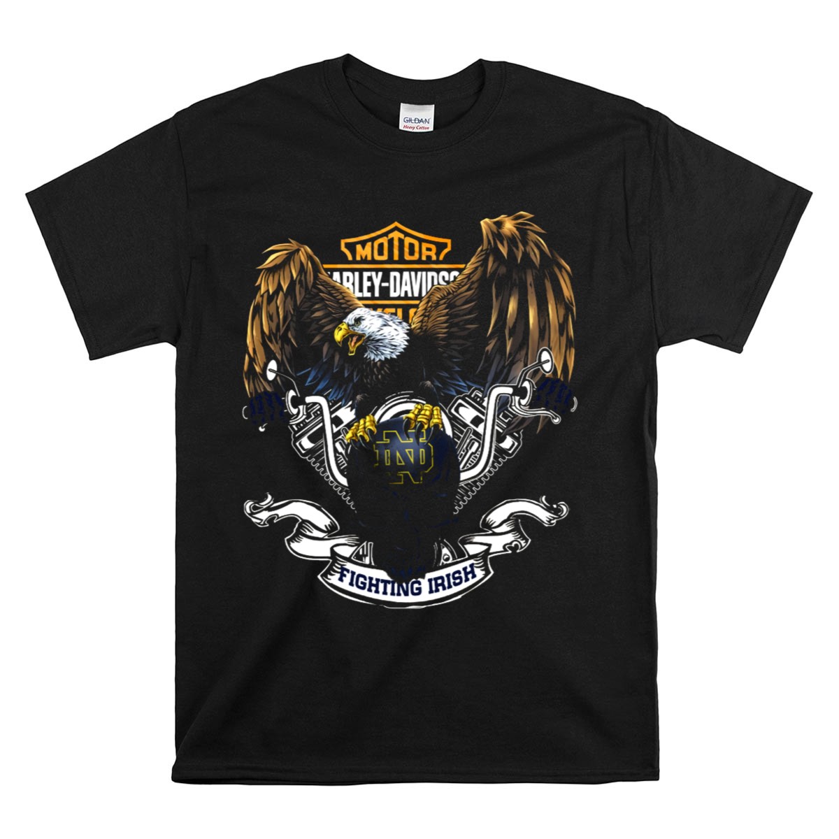 Show your fierce loyalty to the Notre Dame Fighting Irish with the Motor HD Cycles Eagle and Skull T-Shirt. Perfect for fans and enthusiasts alike, this striking design showcases your spirit in a unique and edgy way. Ideal for casual outings, themed events, or daily wear, this shirt is a must-have for anyone looking to stand out while supporting their favorite team. Made with high-quality materials, it promises both comfort and durability, making it an essential addition to your wardrobe.