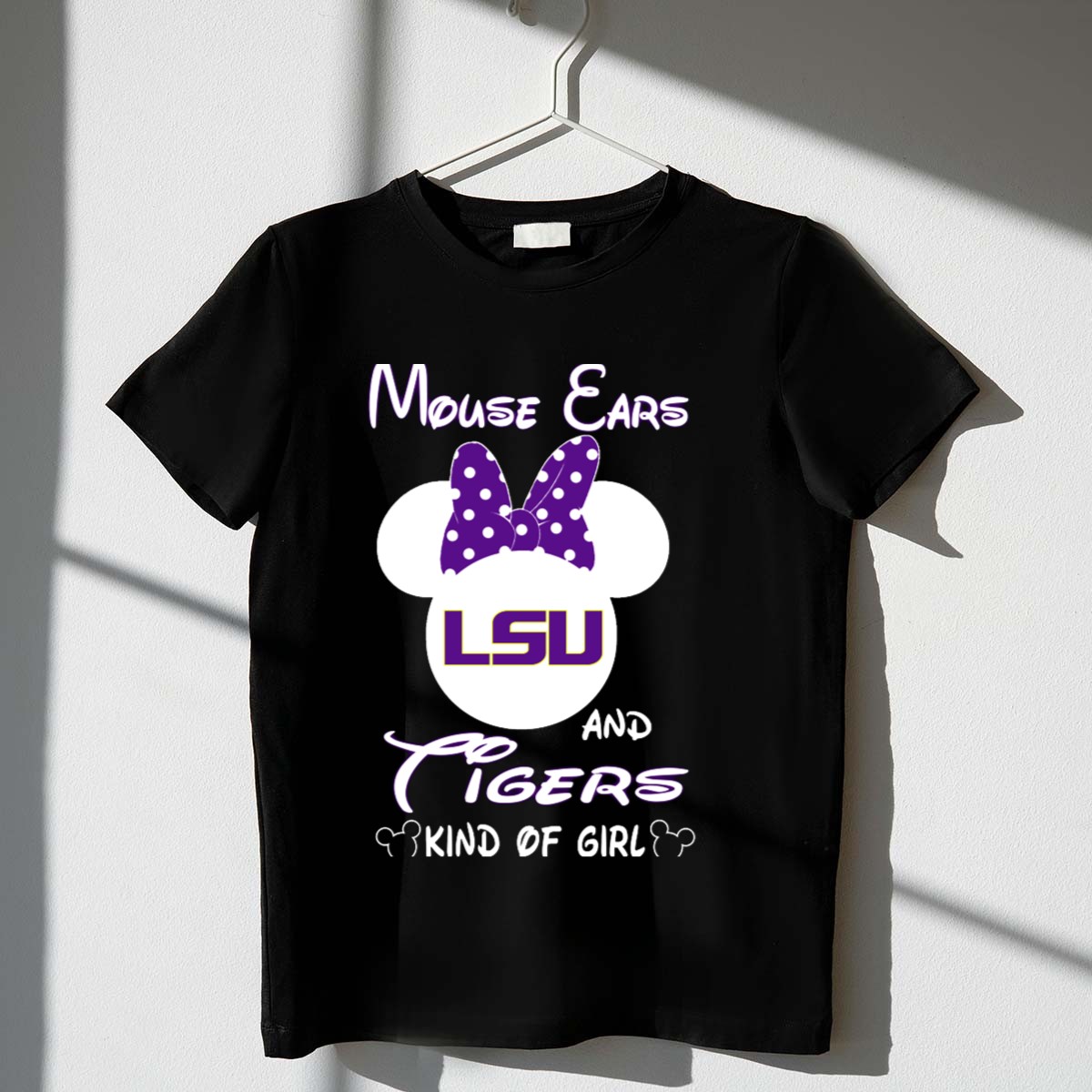 Show your school spirit and love for the LSU Tigers with our “Mouse Ears LSU Tigers Kind Of Girl” T-shirt! Perfect for the passionate fan, this tee is designed for casual outings, themed events, or simply cheering on your team from the comfort of your home. Made with a fan-made design printed in the USA, it’s a unique addition to any LSU supporter’s wardrobe, combining comfort and style effortlessly.
