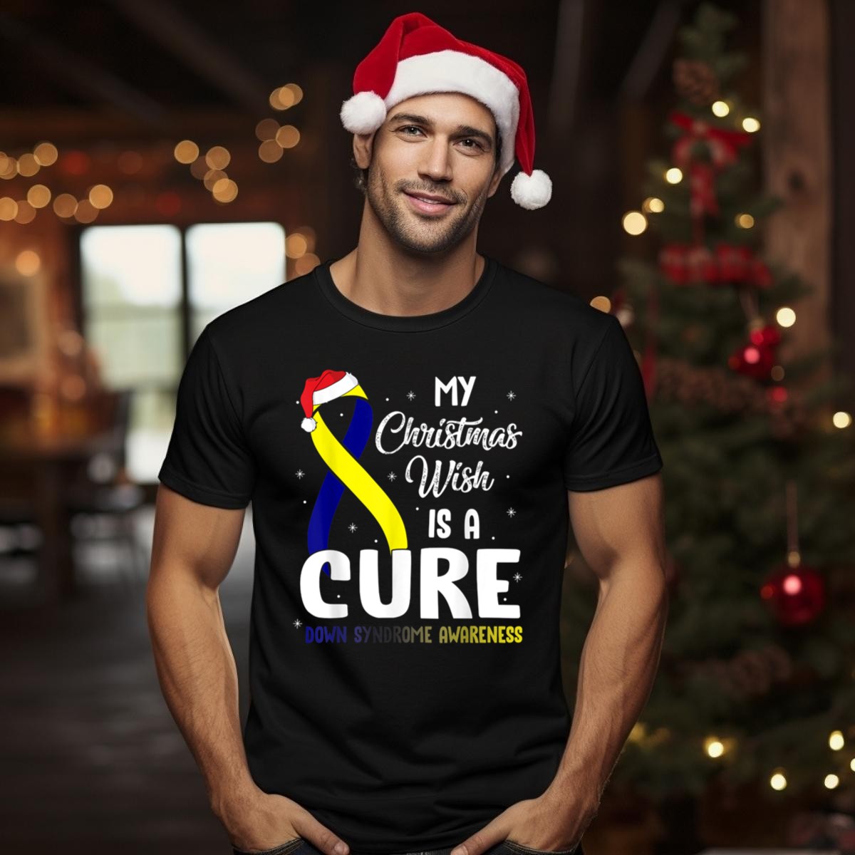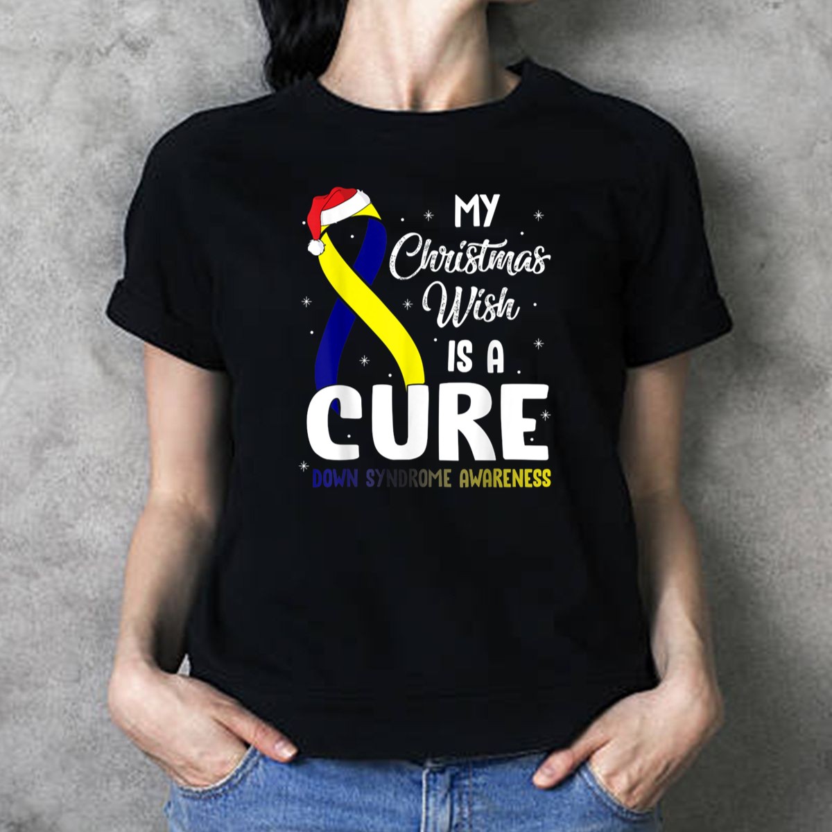 Spread holiday cheer and raise awareness with our “My Christmas Wish Is A Cure” Down Syndrome Awareness Ribbon Santa Hat T-Shirt. This fan-made design is perfect for anyone passionate about supporting Down syndrome awareness during the festive season. Whether you’re attending a themed event, casual gatherings, or simply enjoying daily wear, this shirt combines comfort and purpose, making it a unique addition to your wardrobe.