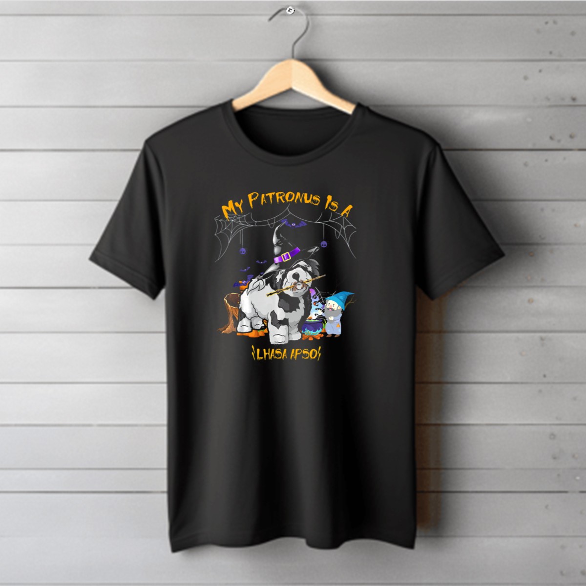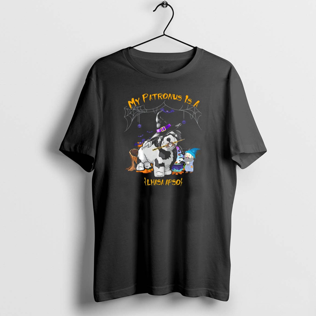Be the first to review “My Patronus Is A Lhasa Apso Halloween Dog Witch Hat Bats Spiders Cauldron T-Shirt”