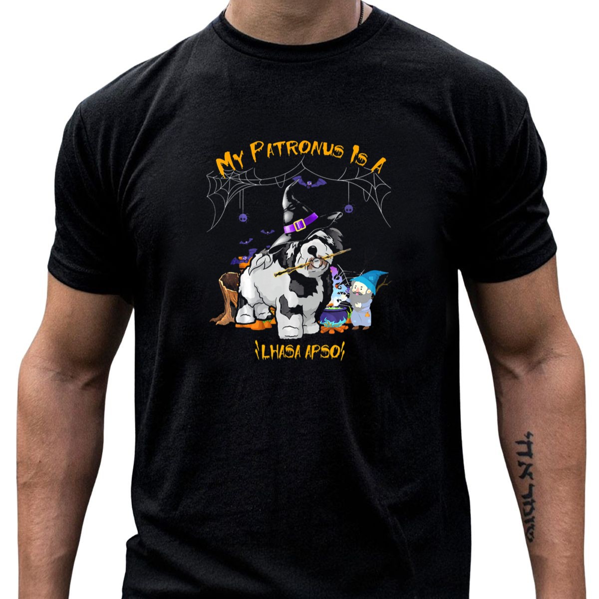 Embrace the enchanting spirit of Halloween with our “My Patronus Is A Lhasa Apso” T-shirt, perfect for dog lovers and witches alike! Featuring a whimsical design that showcases your love for your furry friend, complete with playful bats, spiders, and a cauldron, this shirt is ideal for themed events, casual outings, or simply showing off your unique style. Made for those who appreciate both magic and companionship, this shirt brings a touch of fun to any wardrobe.