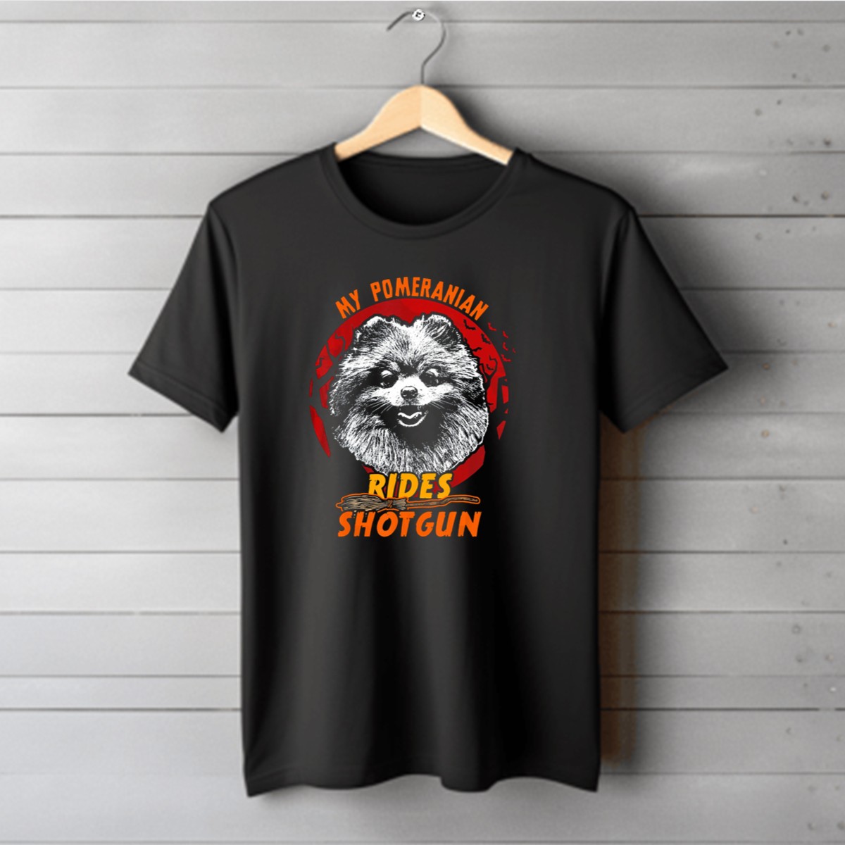 Be the first to review “My Pomeranian Rides Shotgun Halloween Bats Broomstick T-Shirt”