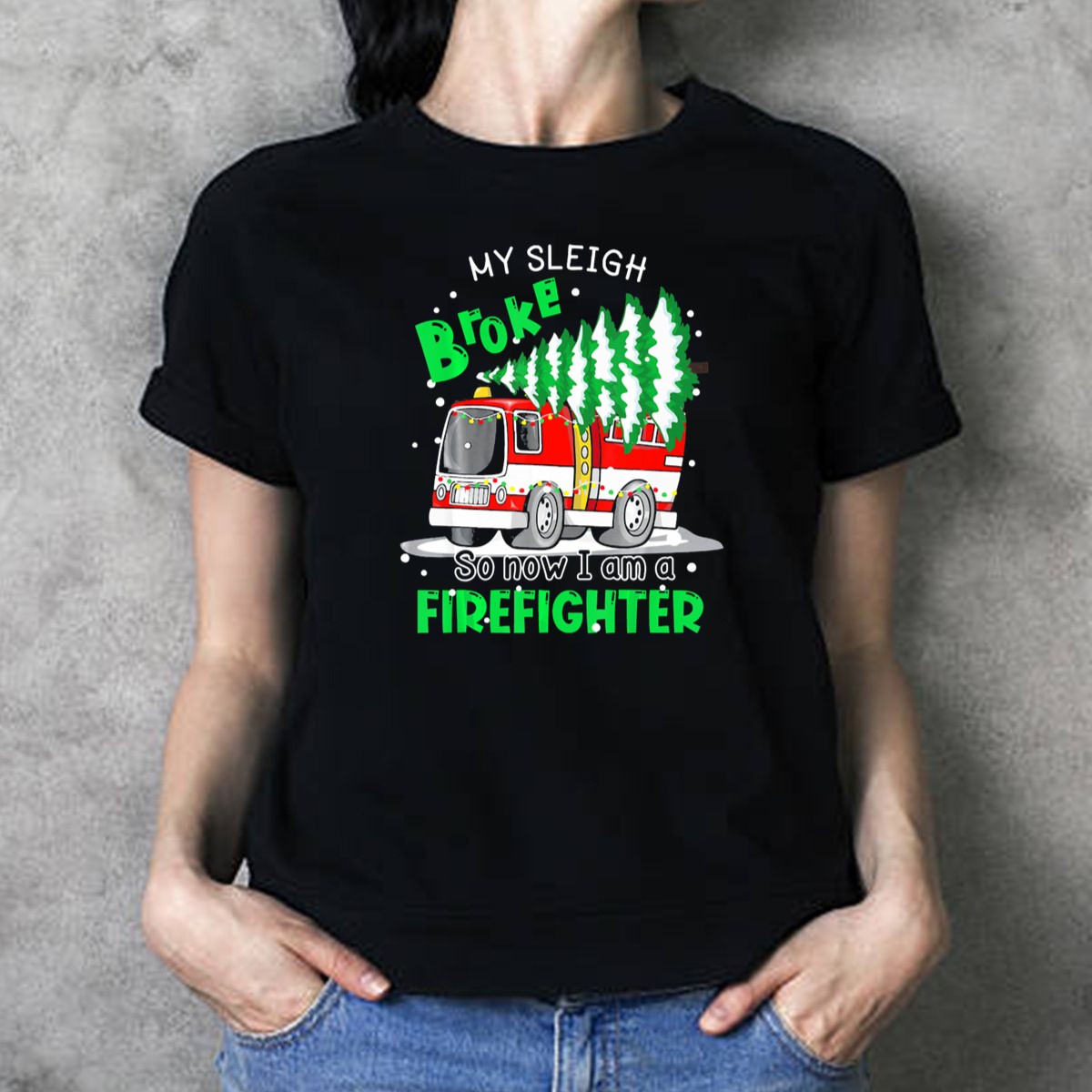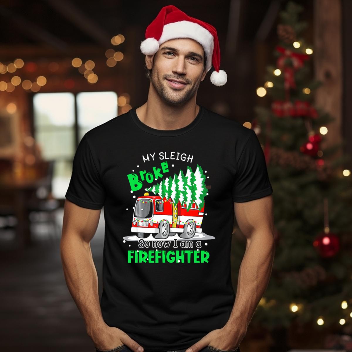 Be the first to review “My Sleigh Broke So Now I Am A Firefighter With Christmas Fire Truck And Trees T Shirt”