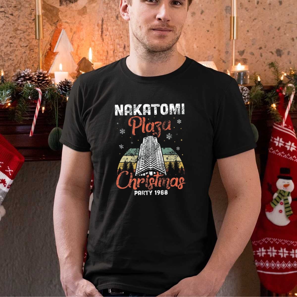 Celebrate the spirit of the holidays with our Nakatomi Plaza Christmas Party 1988 Retro Building Snowflakes Forest Scene T-Shirt! Perfect for fans of classic films and festive gatherings, this shirt brings a touch of nostalgia to your casual wardrobe. Whether you’re attending a themed event, enjoying a cozy day at home, or joining friends for a holiday get-together, this fan-made design, proudly printed in the USA, will make you stand out in style!